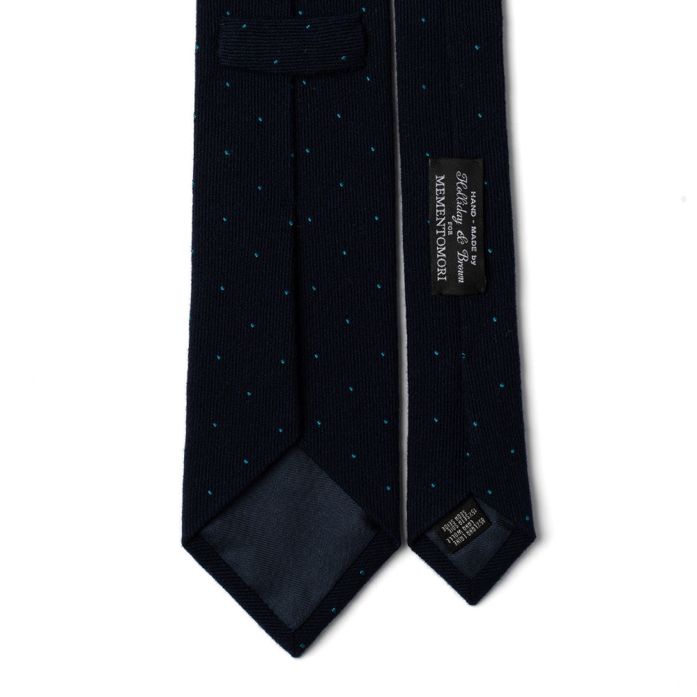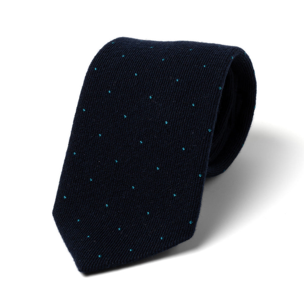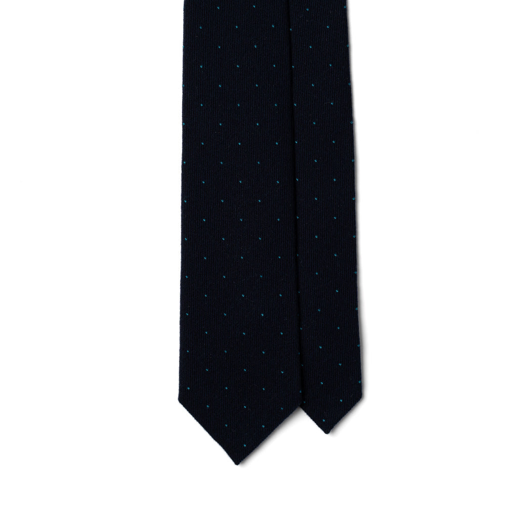 Blue Pin Dot Pattern Winter Navy Woven Wool Silk Tie