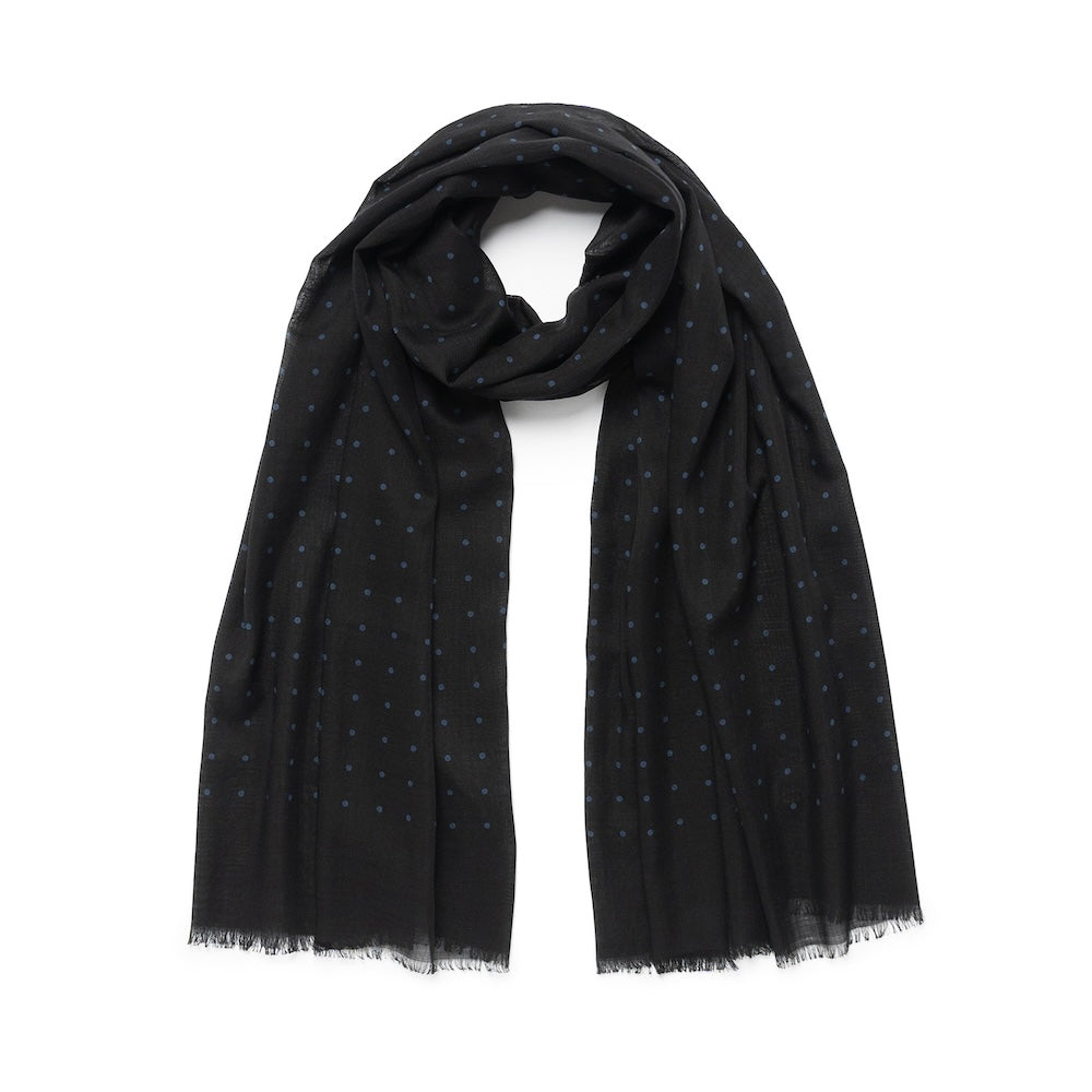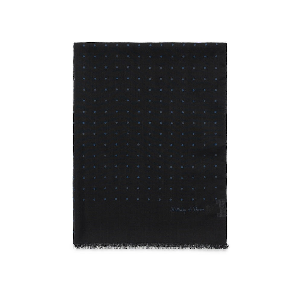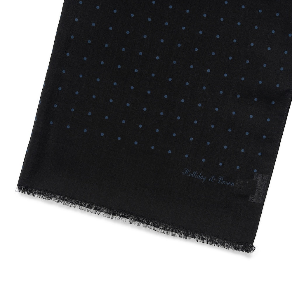 Navy Polka Dot Pattern Jet Black Virgin Wool Silk Scarf