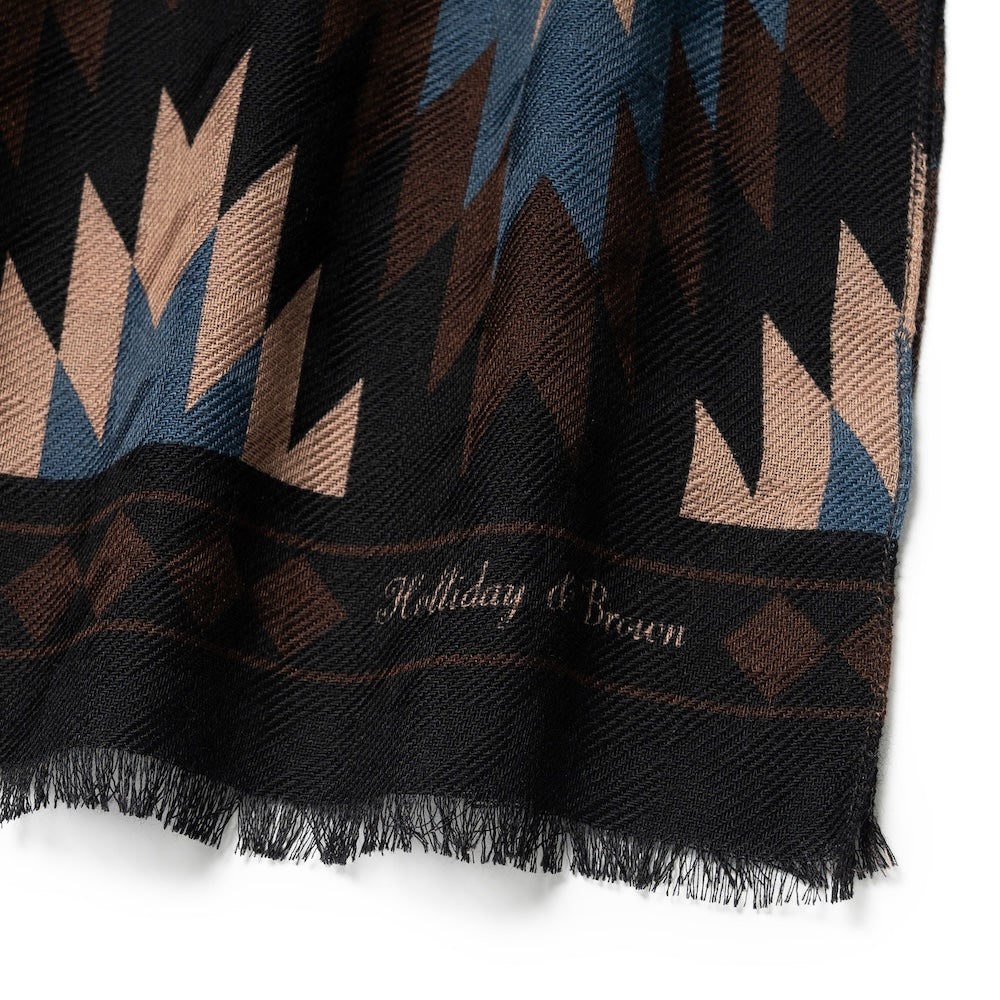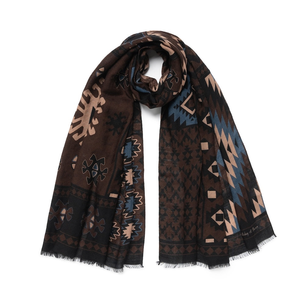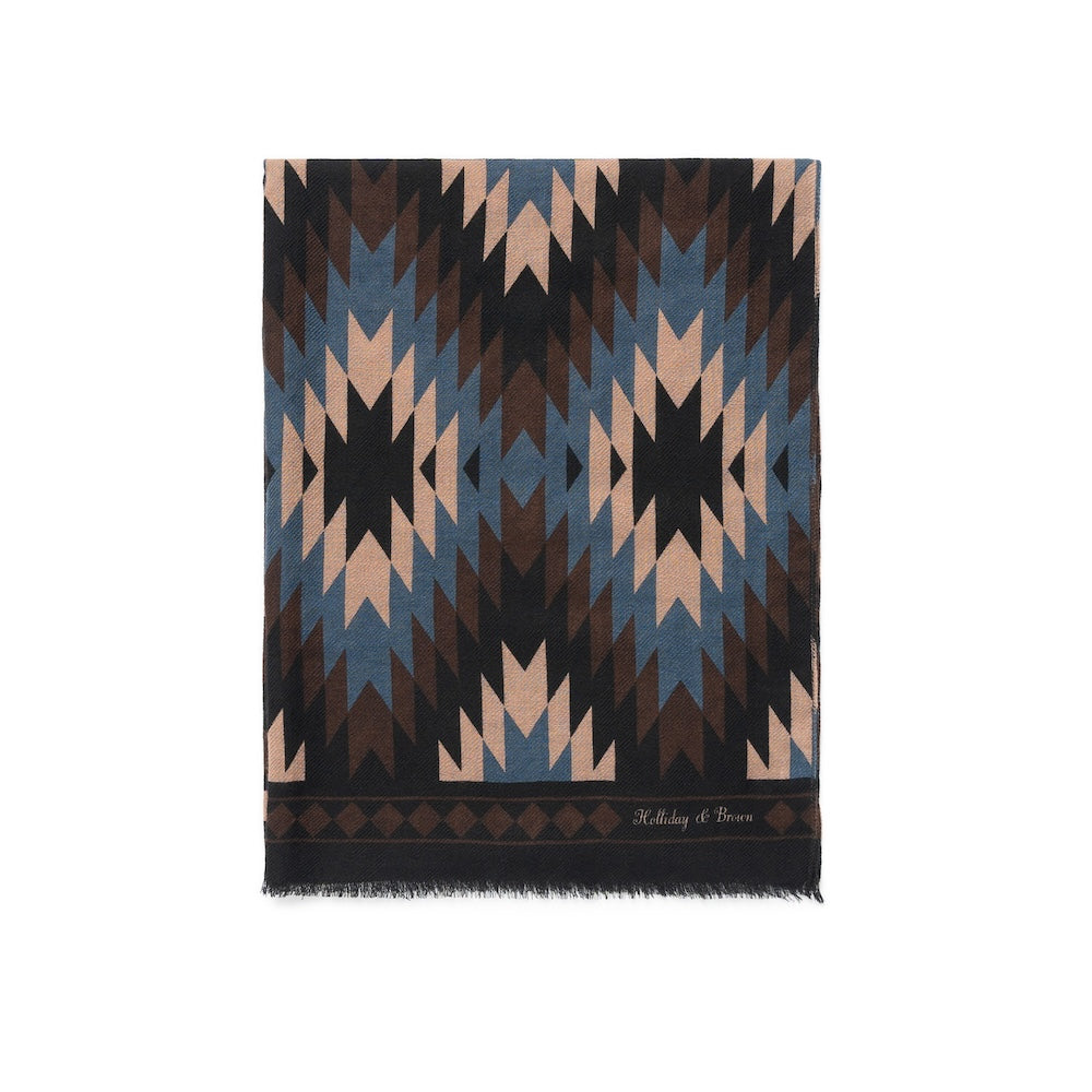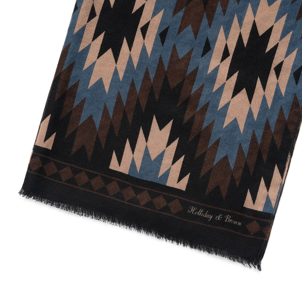 Navajo Pattern Black Brown Blue Wool Silk Scarf