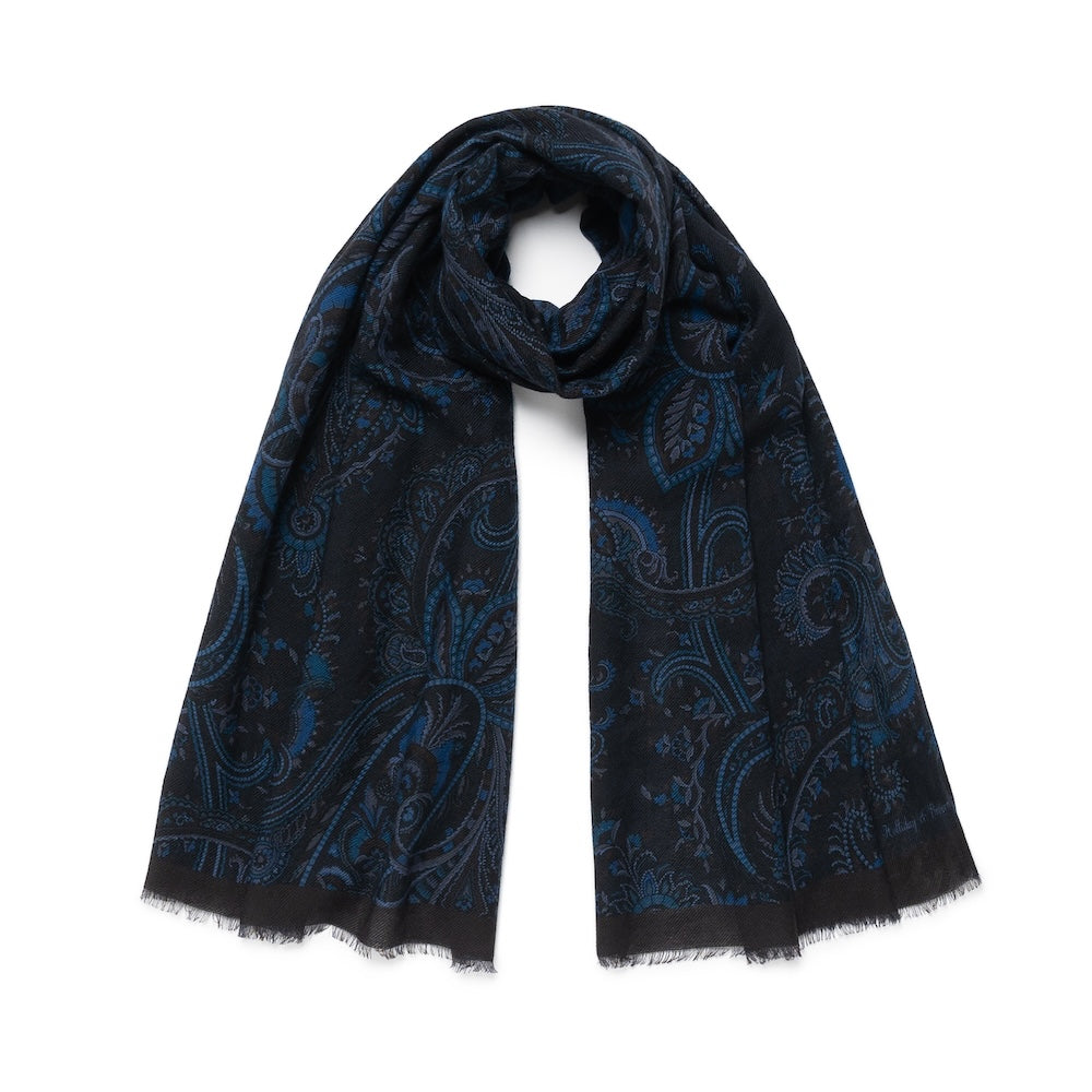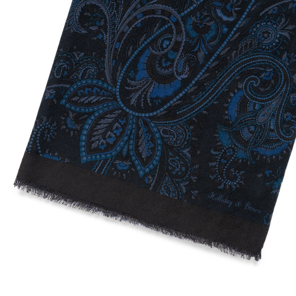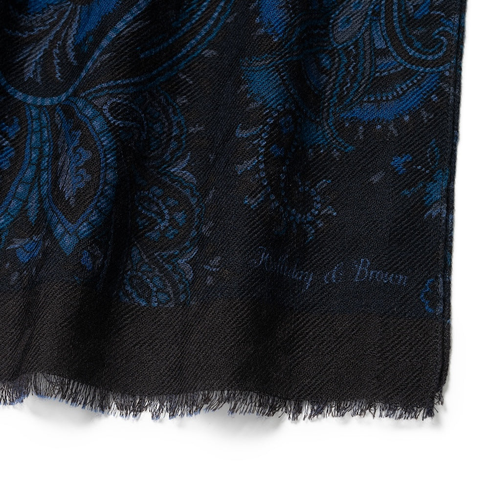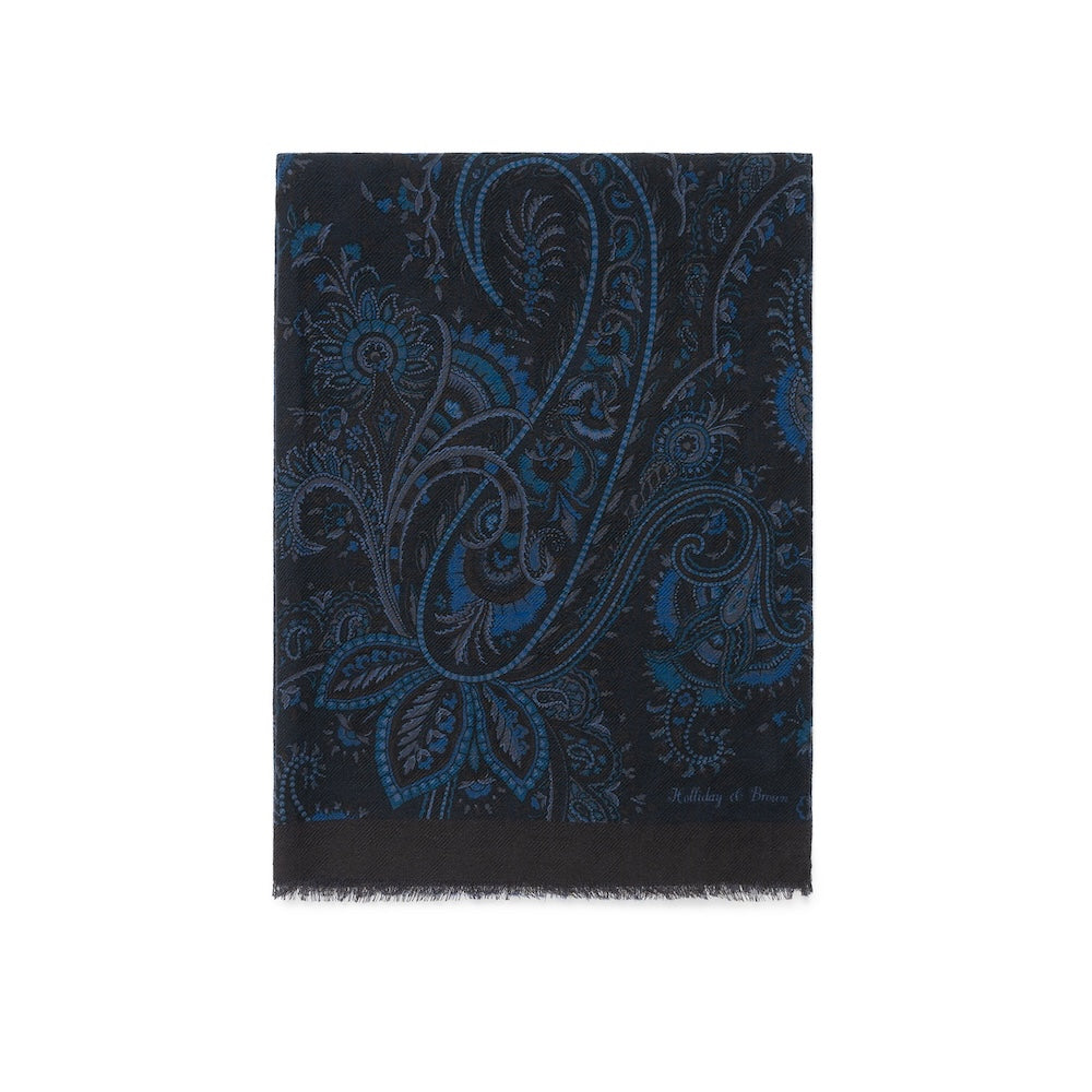 Navajo Pattern Black Brown Blue Wool Silk Scarf