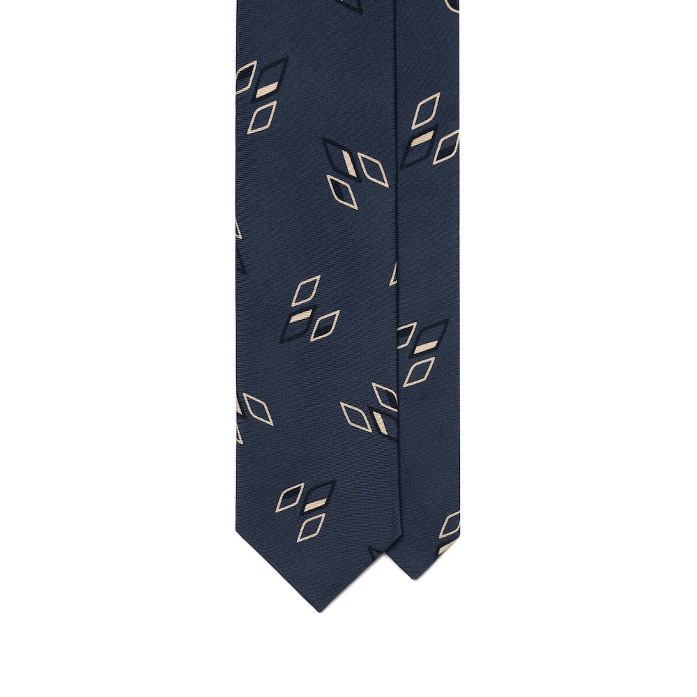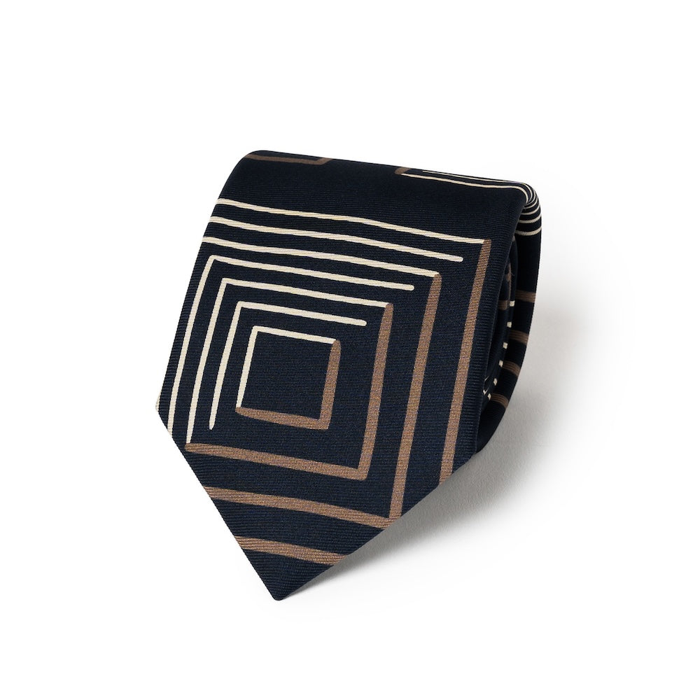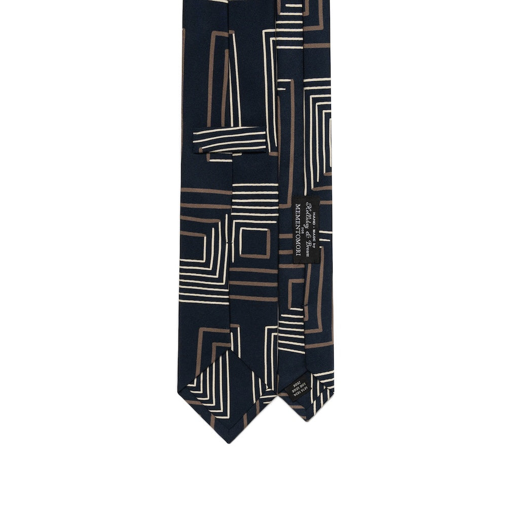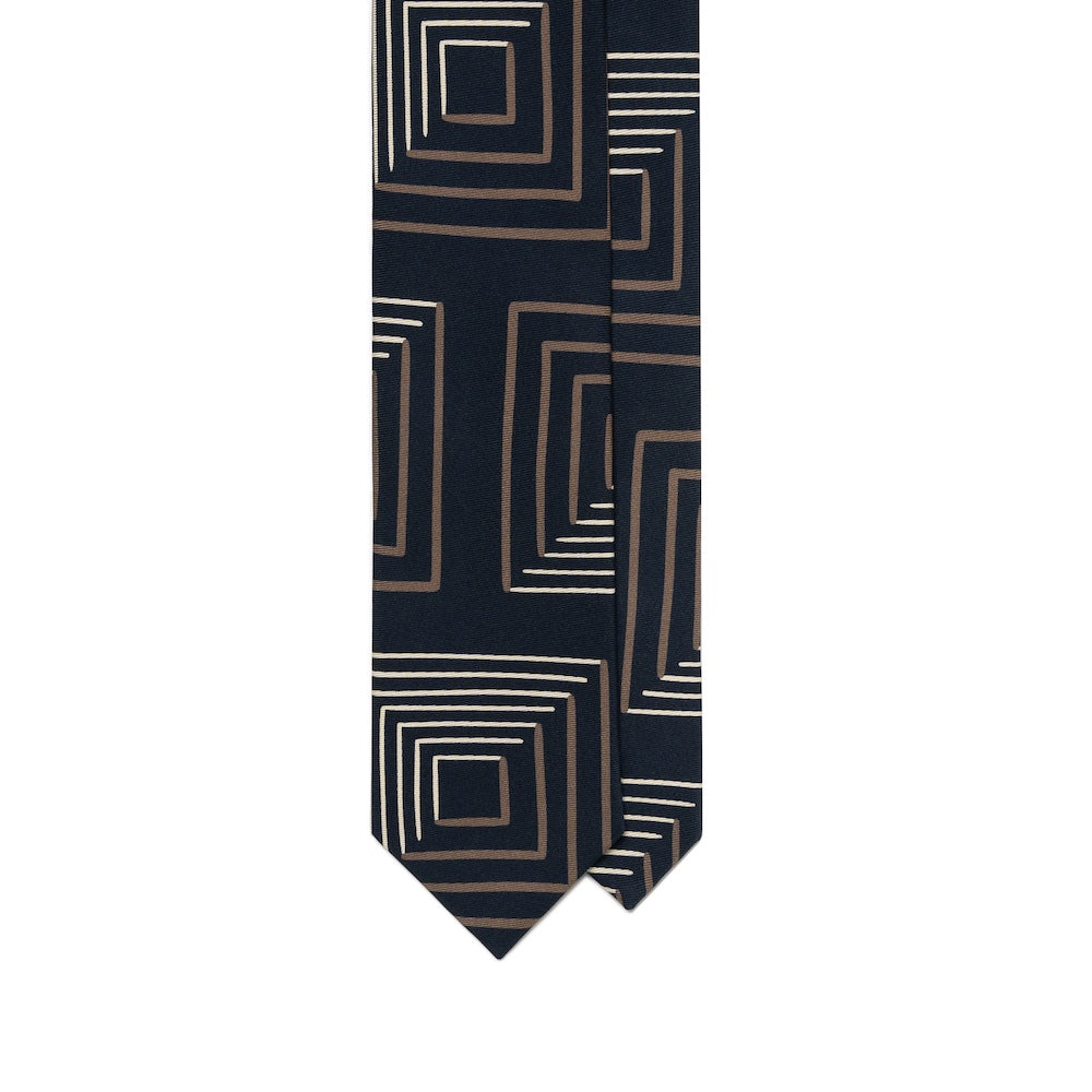 Signature Pattern Dark Navy Sand Brown Printed Silk Tie