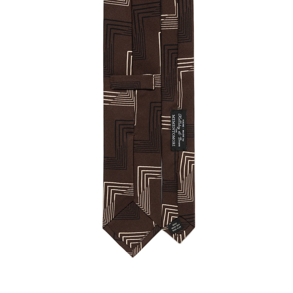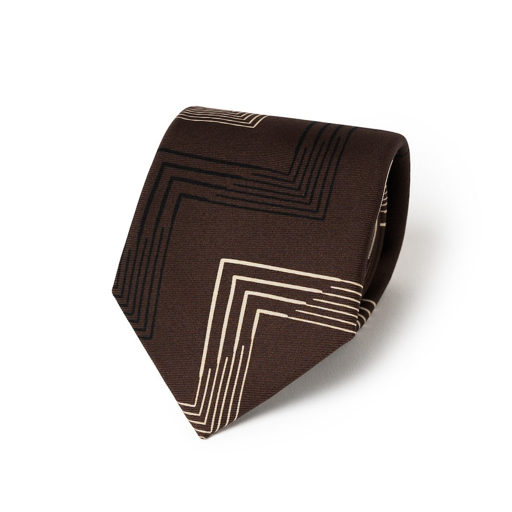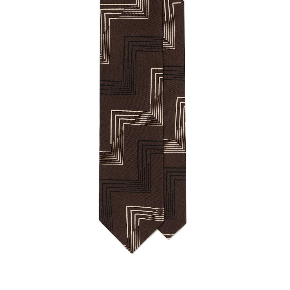 Zigzag Block Line Pattern Espresso Brown Printed Silk Tie