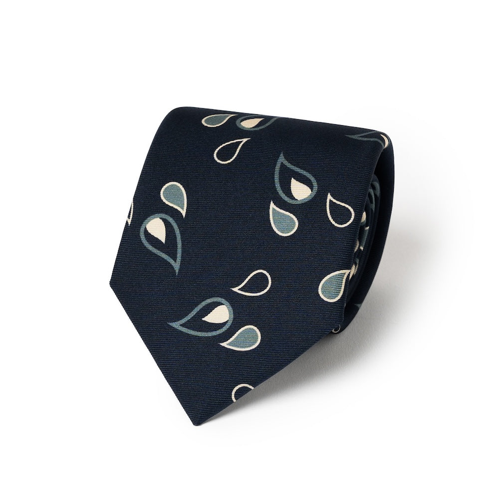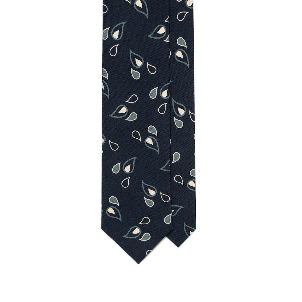 Paisley Drop Pattern Deep Navy Printed Silk Tie