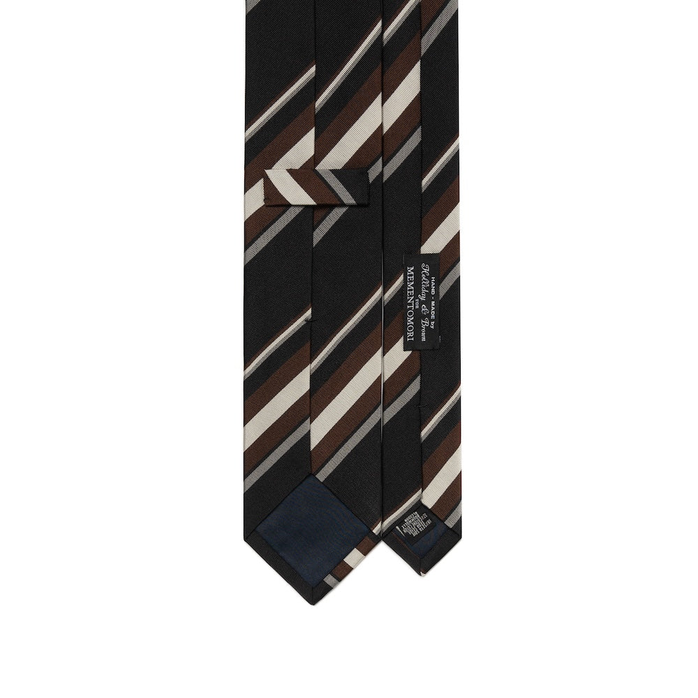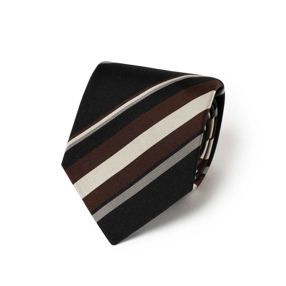 Classic Stripe Black, Brown & Beige Woven Silk Tie