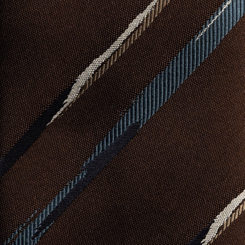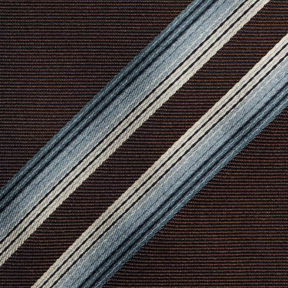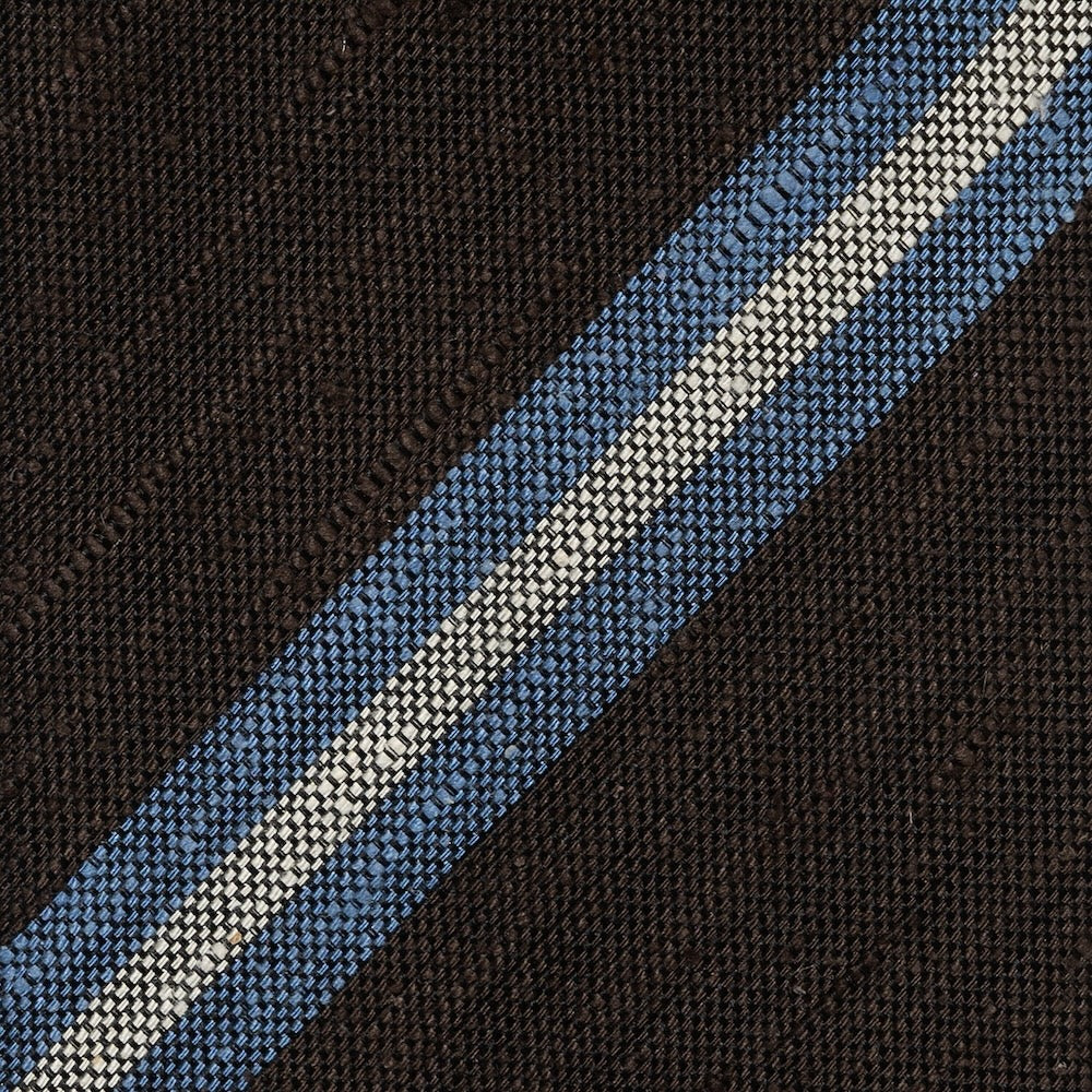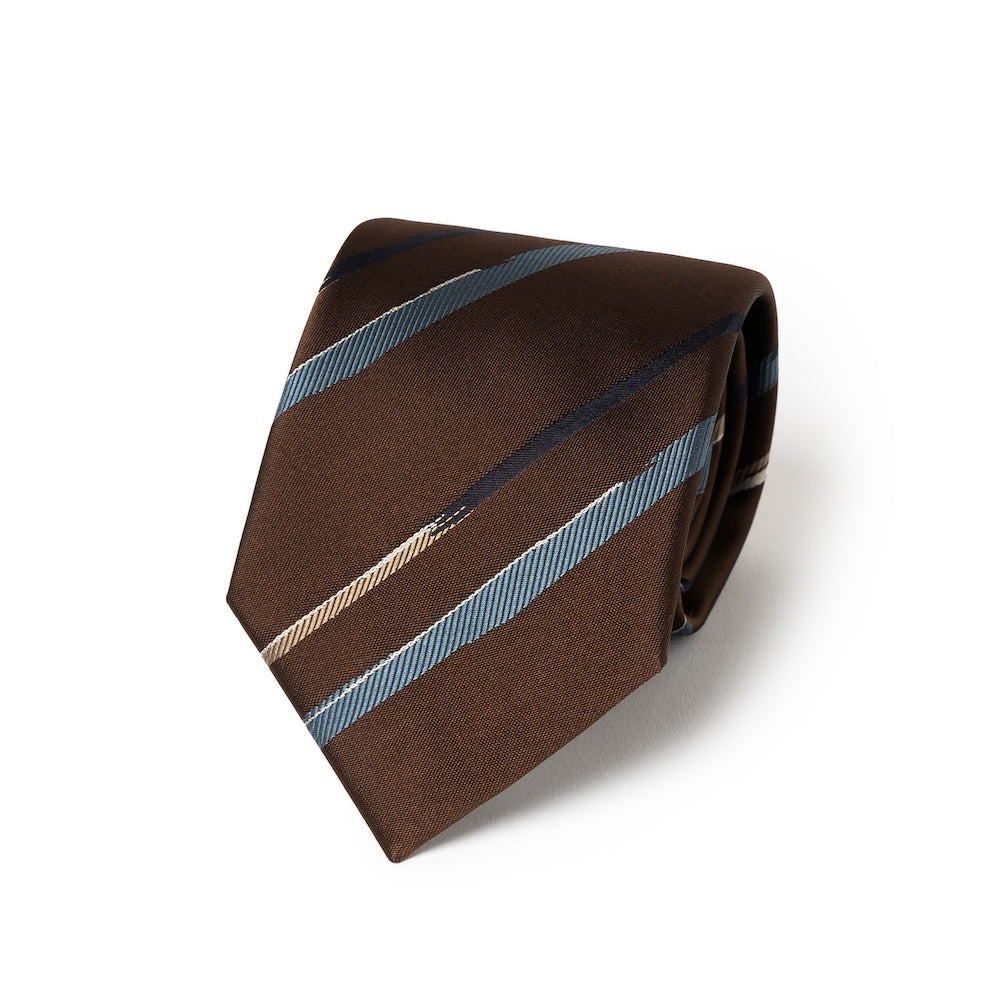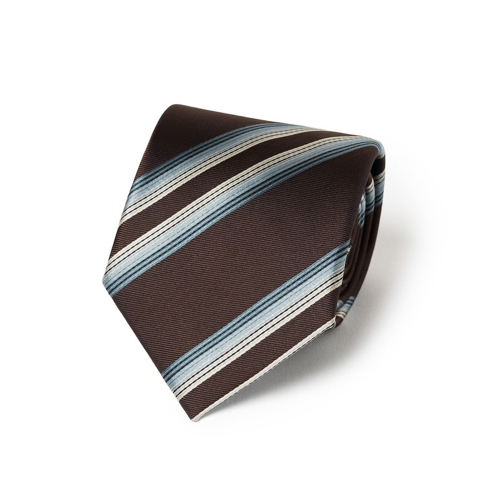 Signature Stripe Chocolate Brown, Blue & White Woven Silk Tie