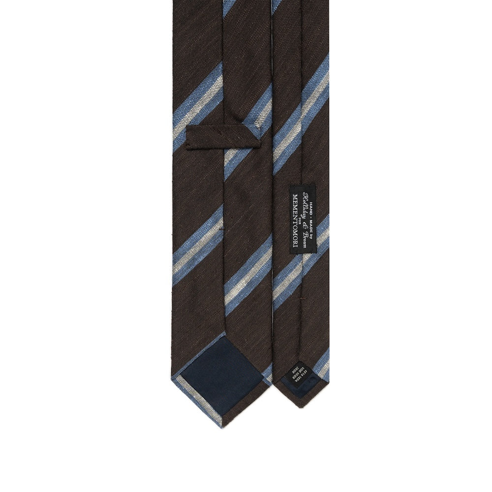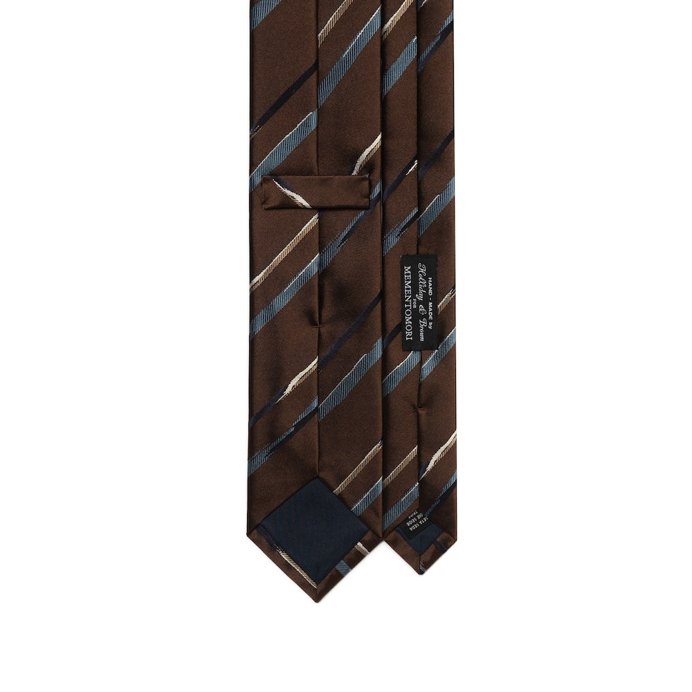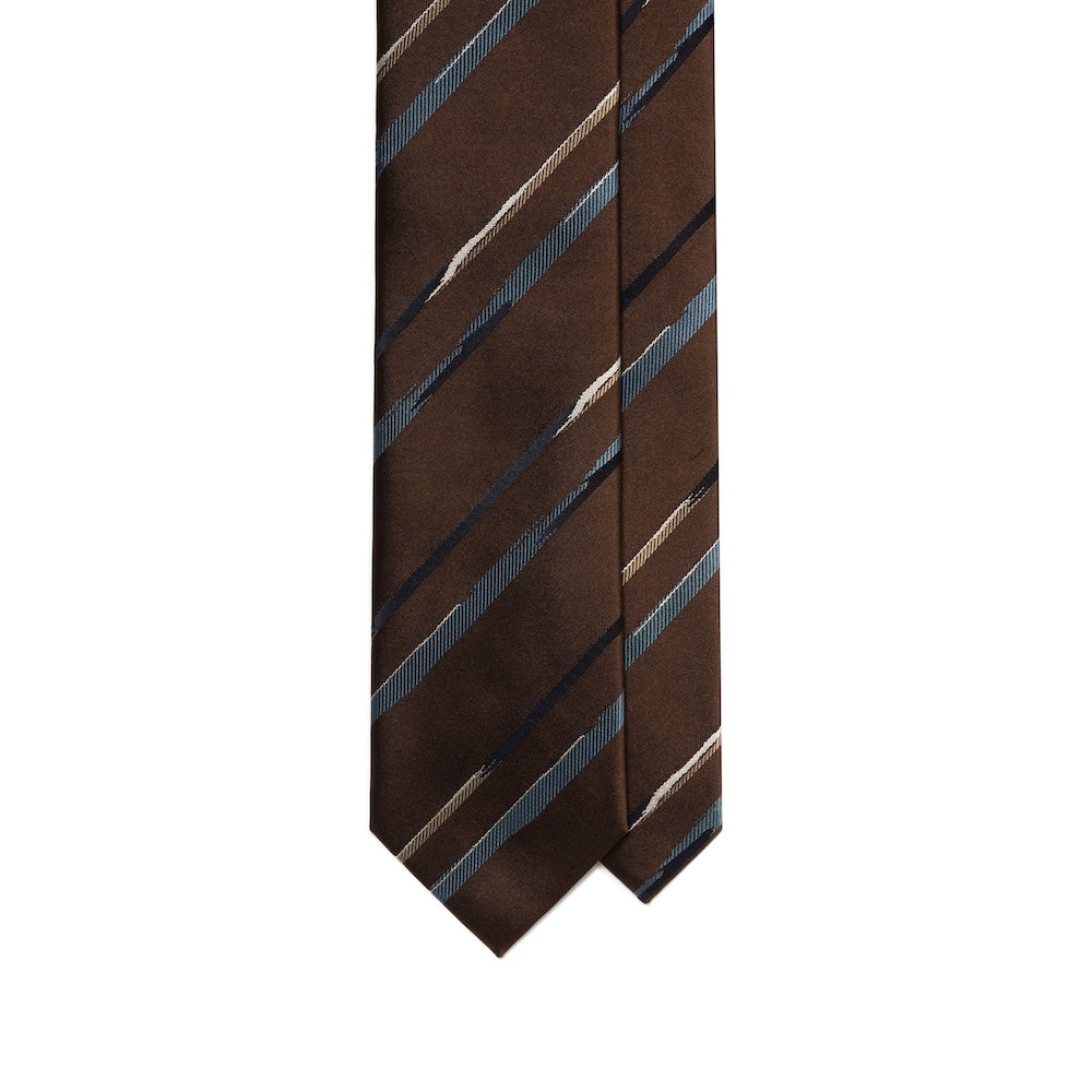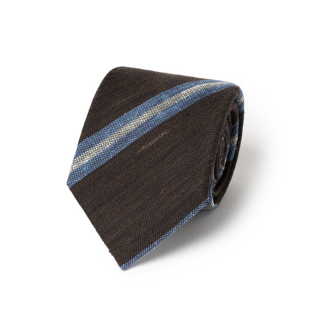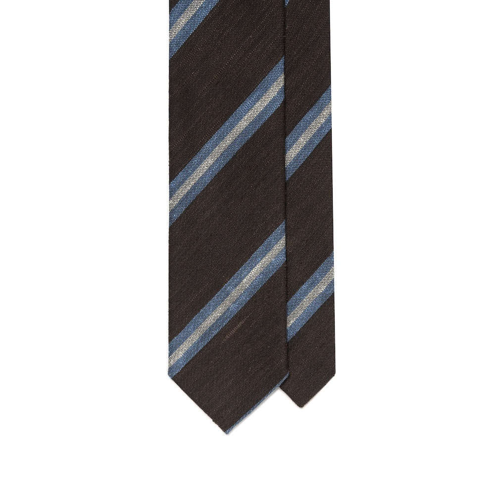 Signature Stripe Chocolate Brown, Blue & White Woven Silk Tie