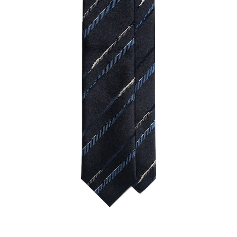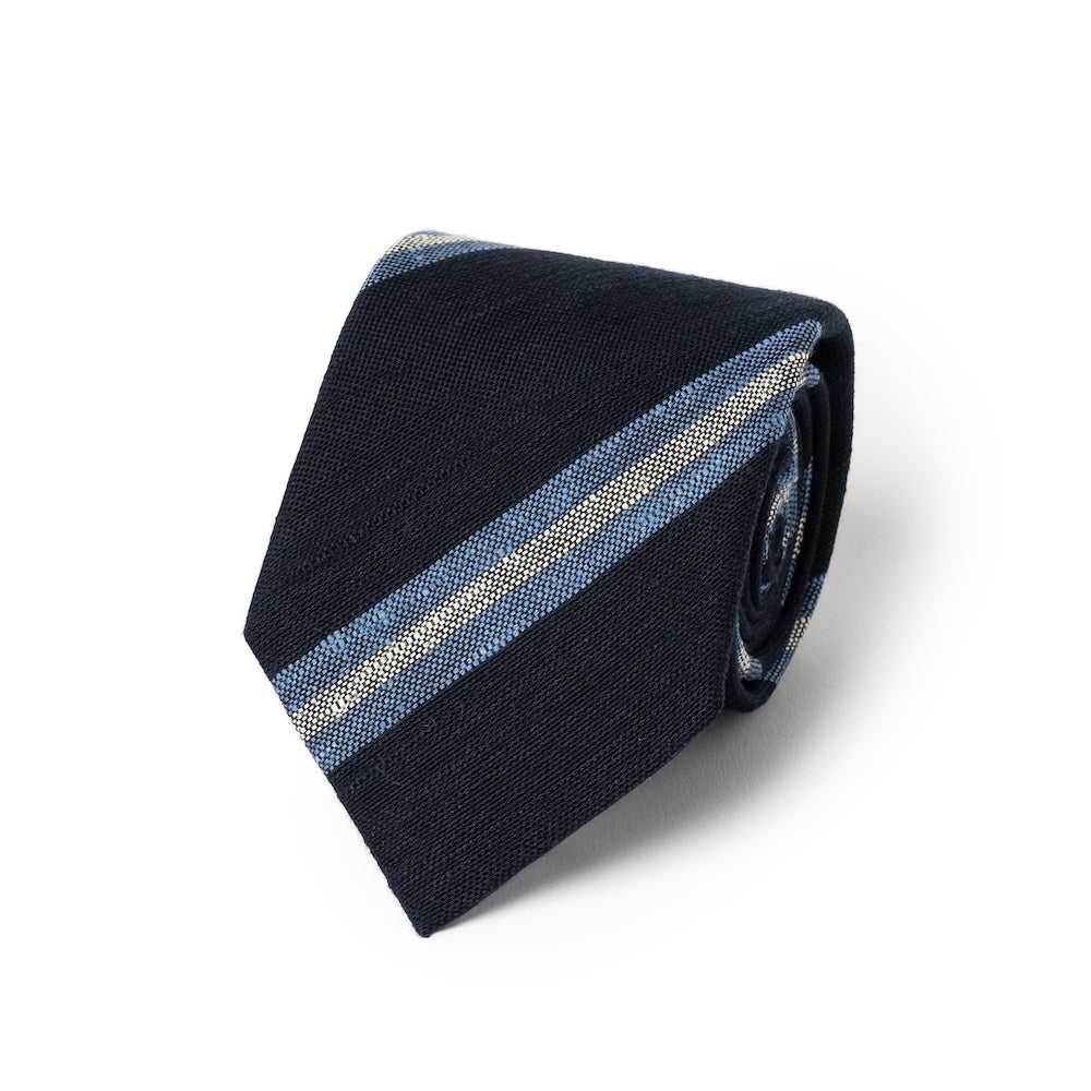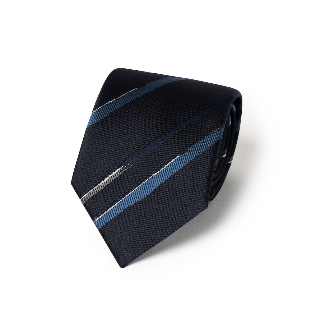 Signature Stripe Deep Navy & White Woven Silk Tie