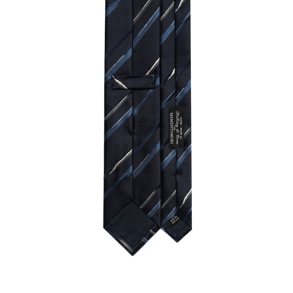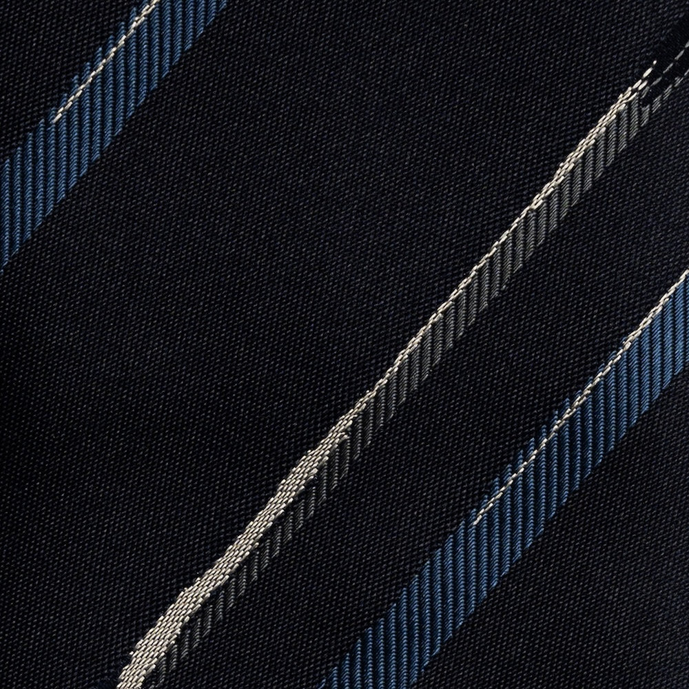 Classic Stripe Blue Gray Navy Silver Silk Tie