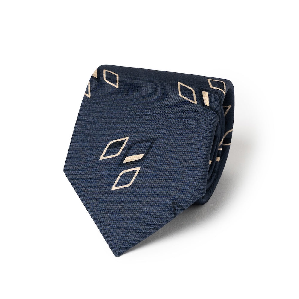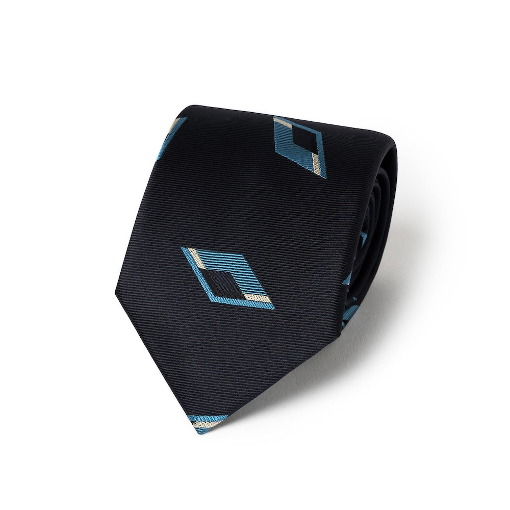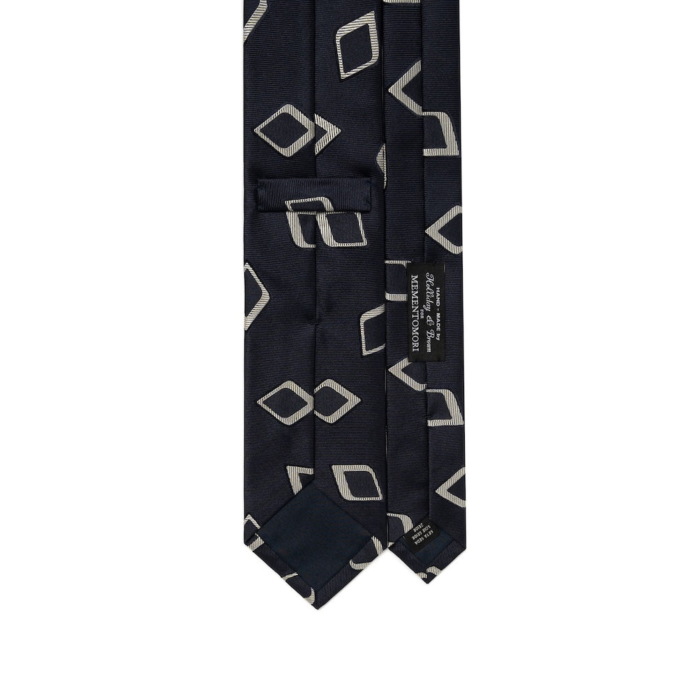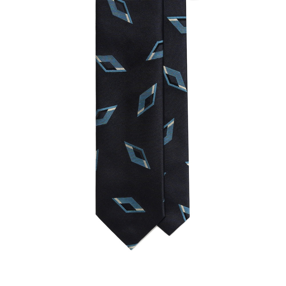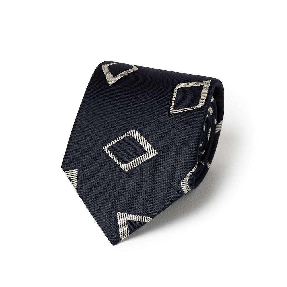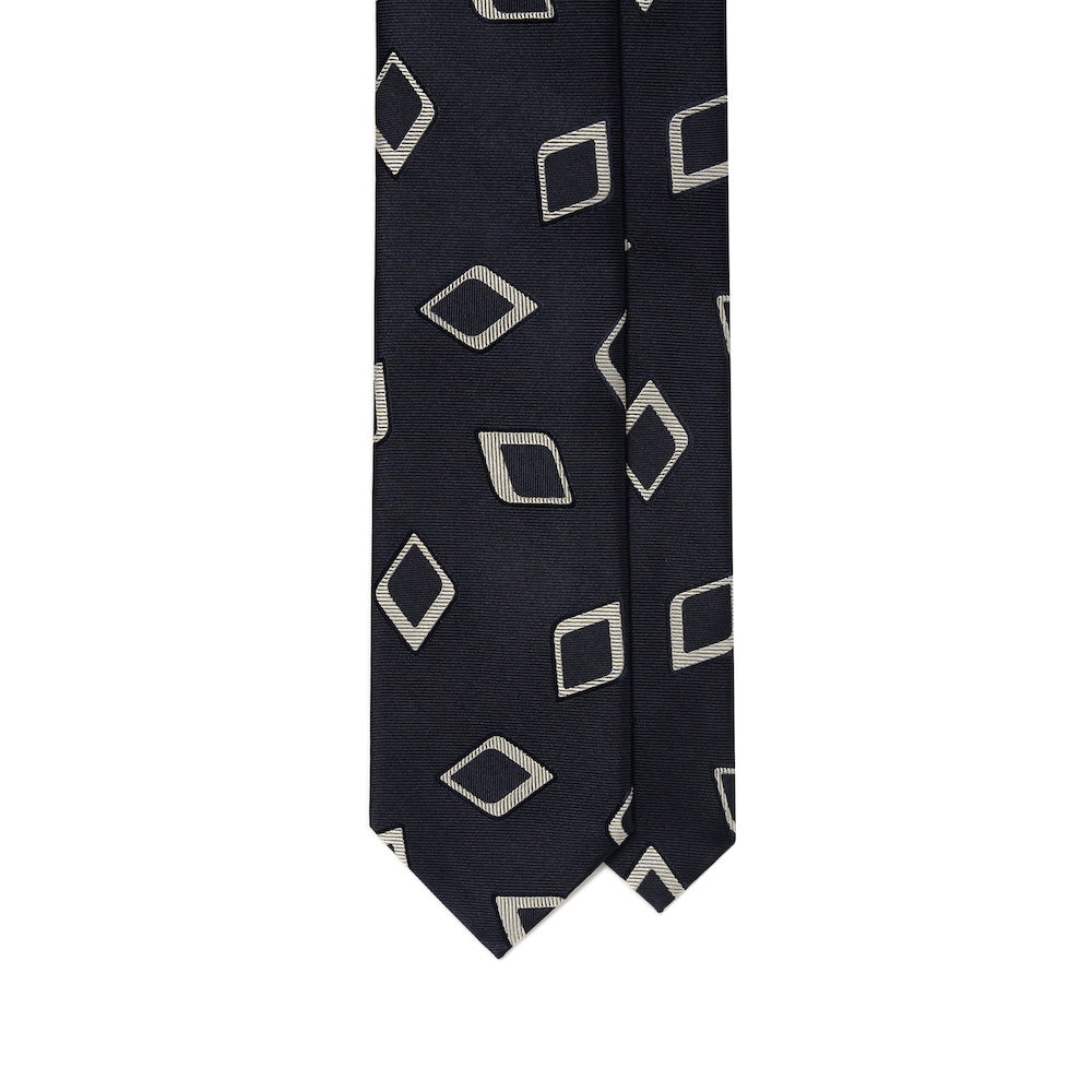 Silver Diamond Pattern Dark Navy Woven Silk Tie