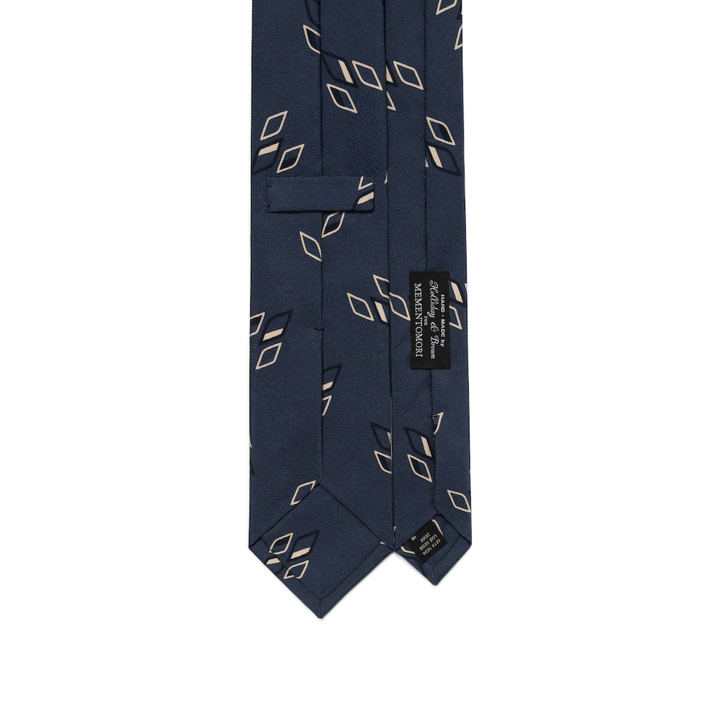 Blue Box Pattern Classic Navy Printed Silk Tie