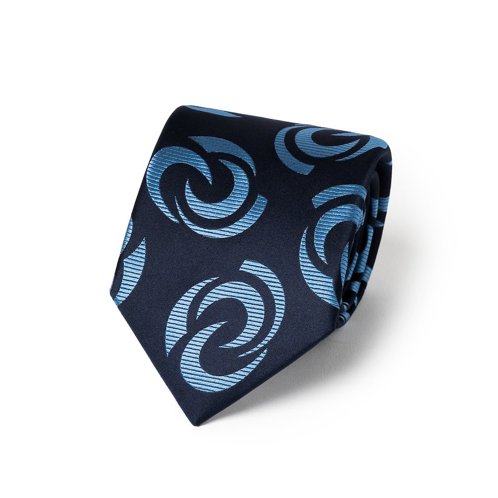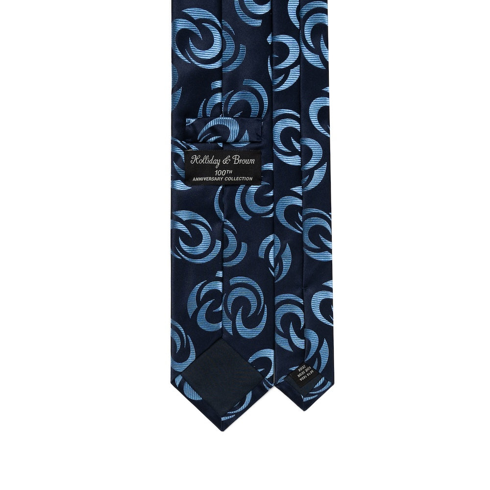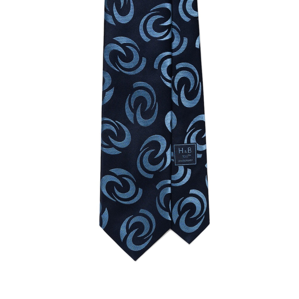 100th Anniversary Blue Swirl Pattern Deep Navy Woven Silk Tie
