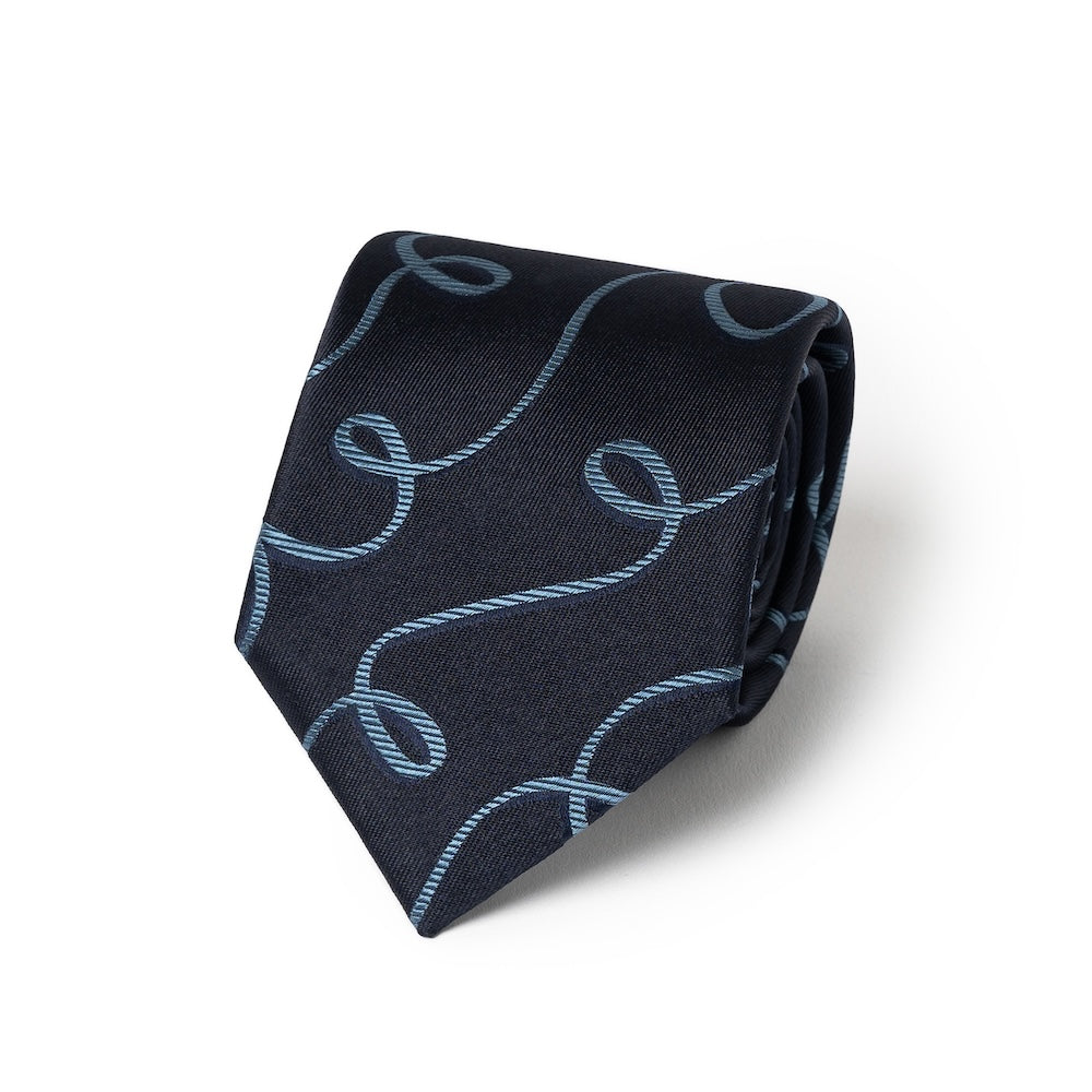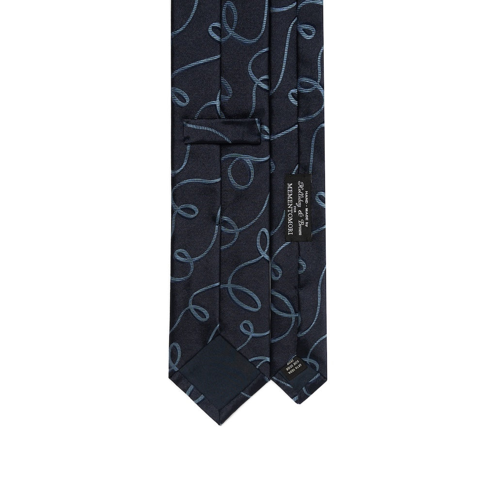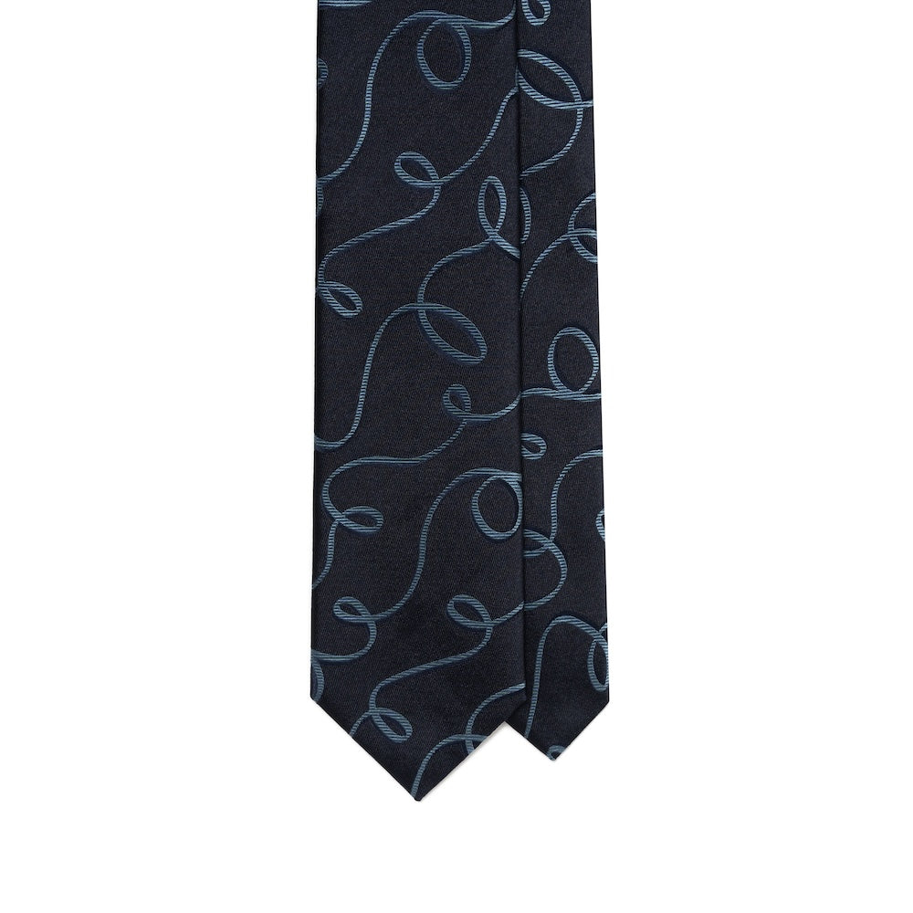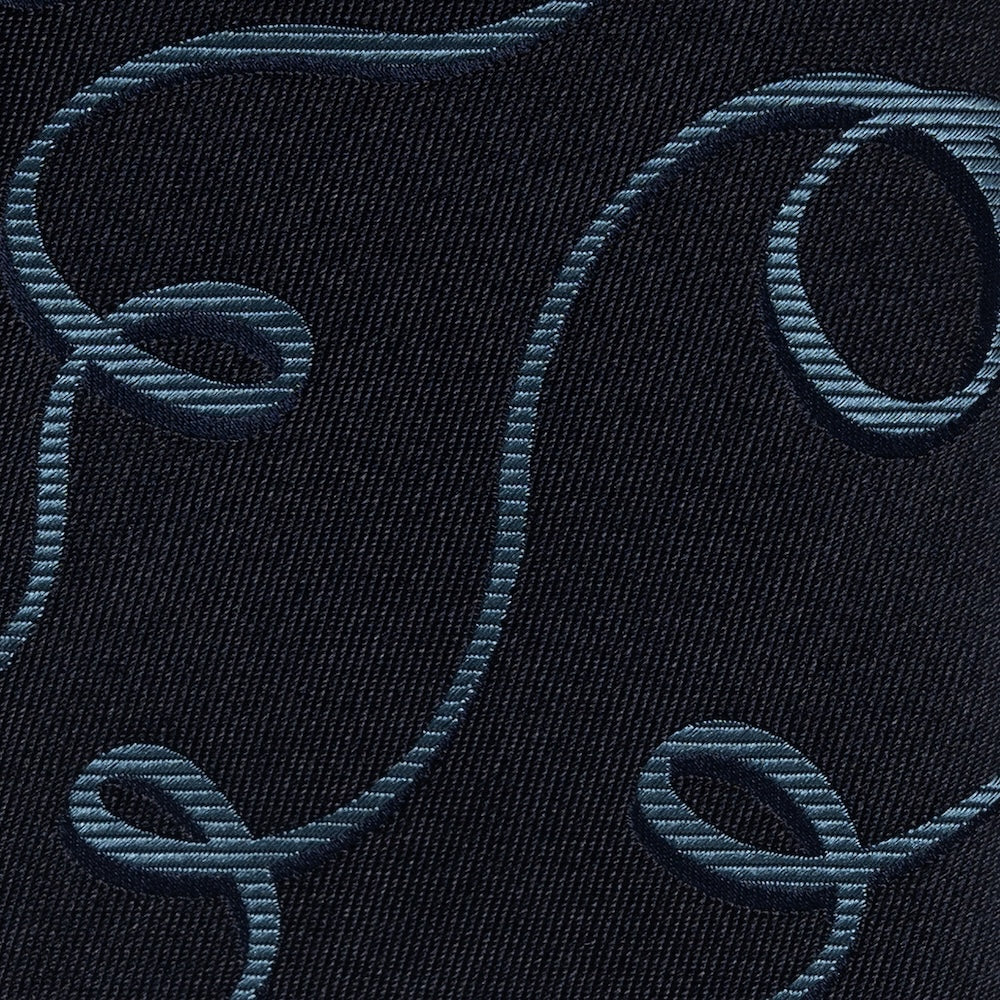 100th Anniversary Blue Swirl Pattern Deep Navy Woven Silk Tie