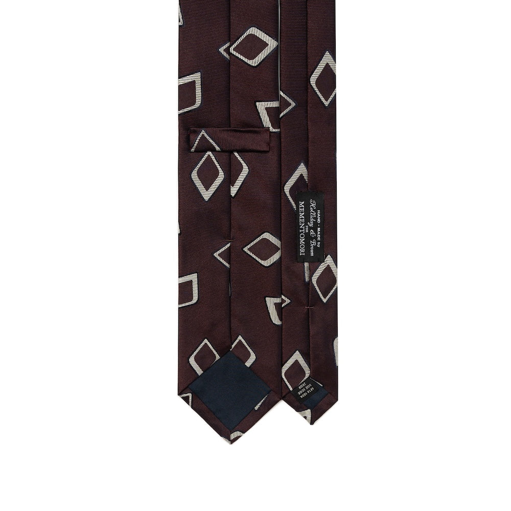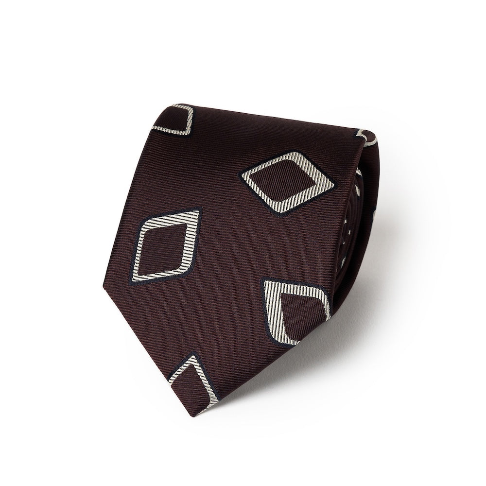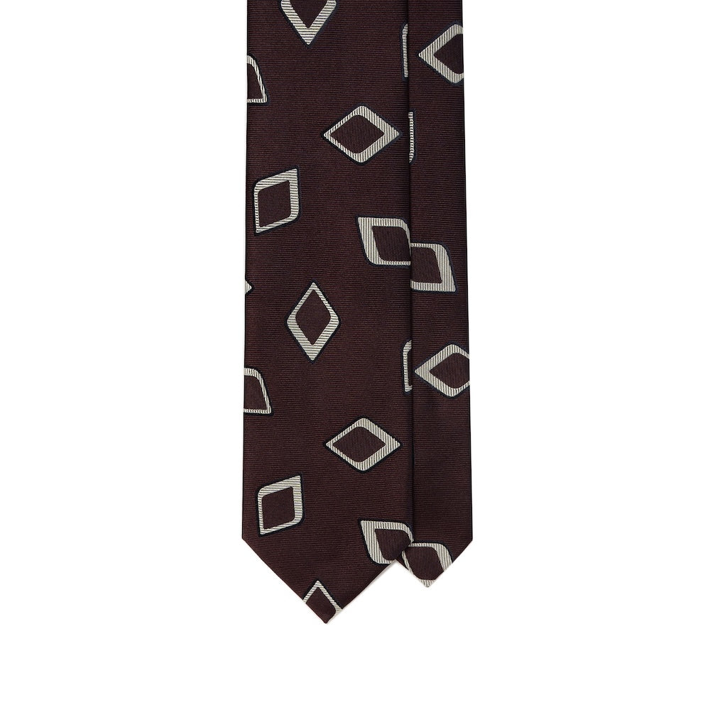 Beige Diamond Pattern Burgundy Brown Woven Silk Tie