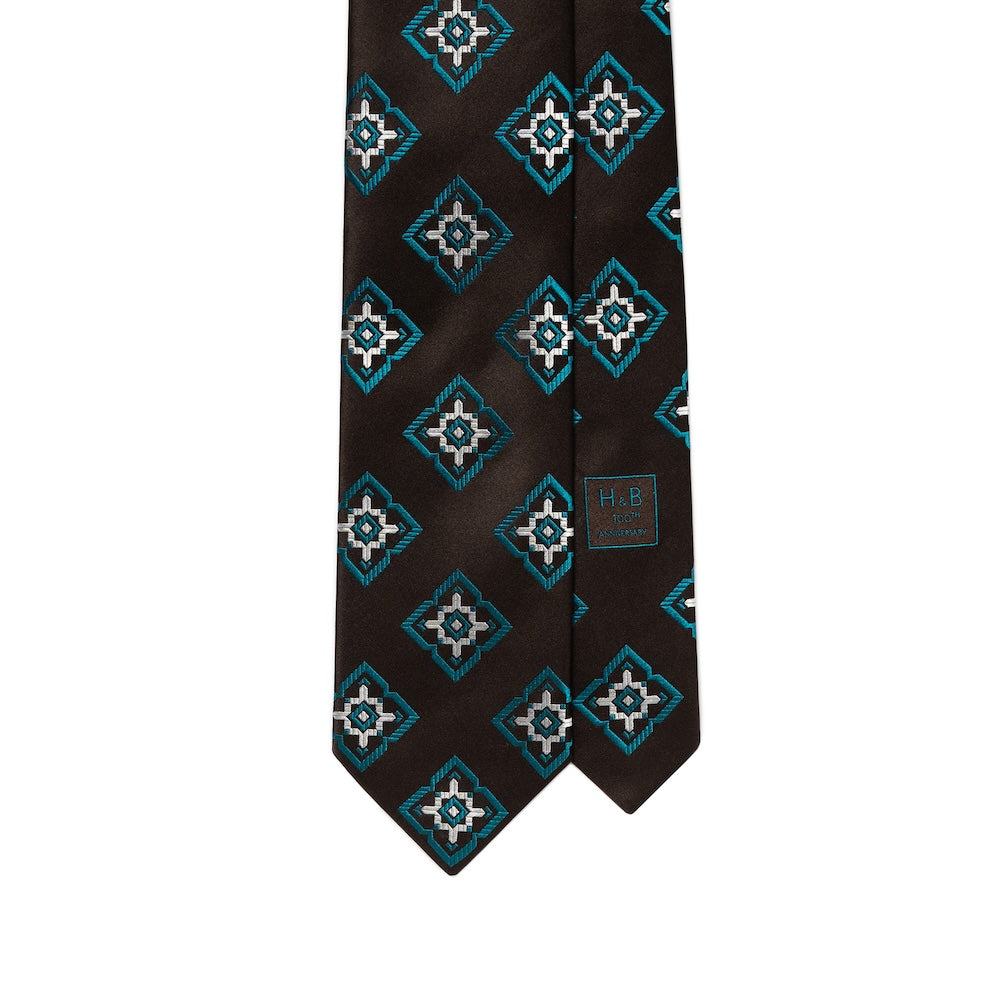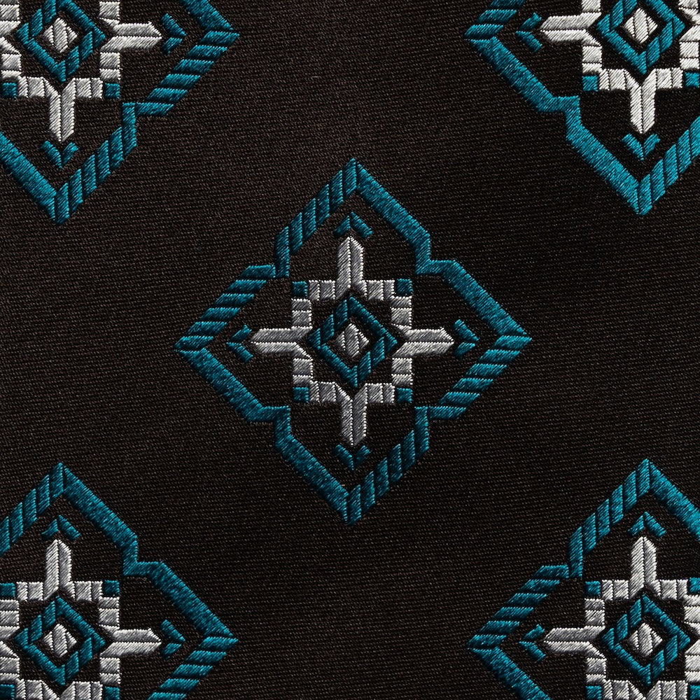 Oriental Medallion Pattern Dark Navy Mint Printed Silk Tie