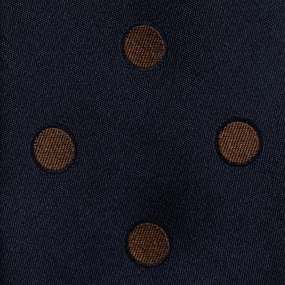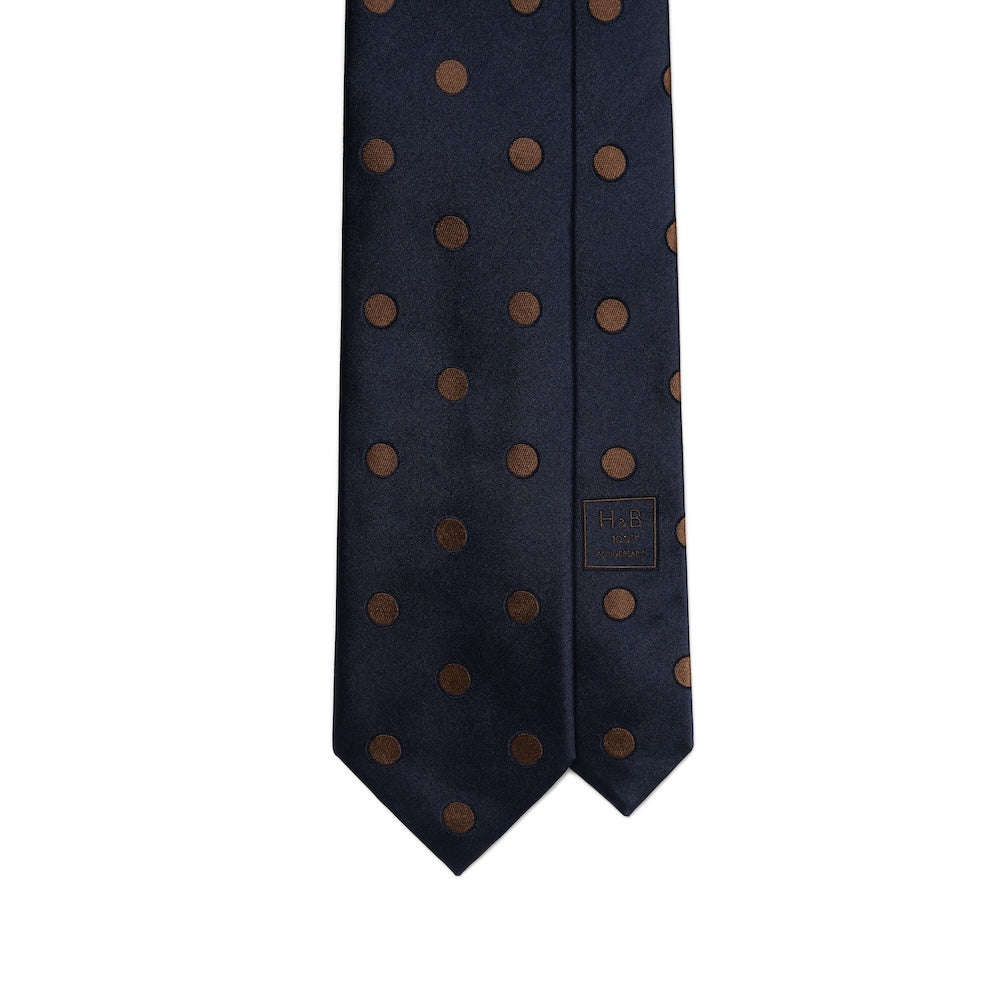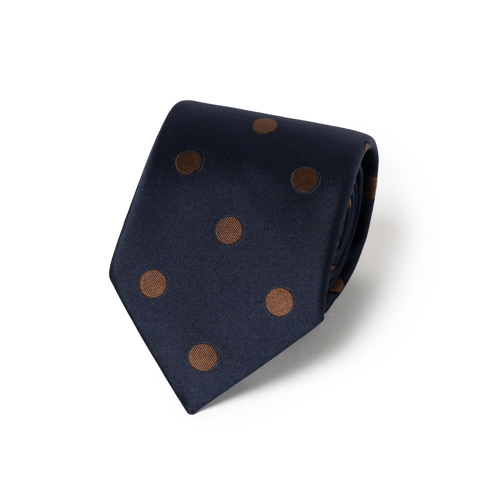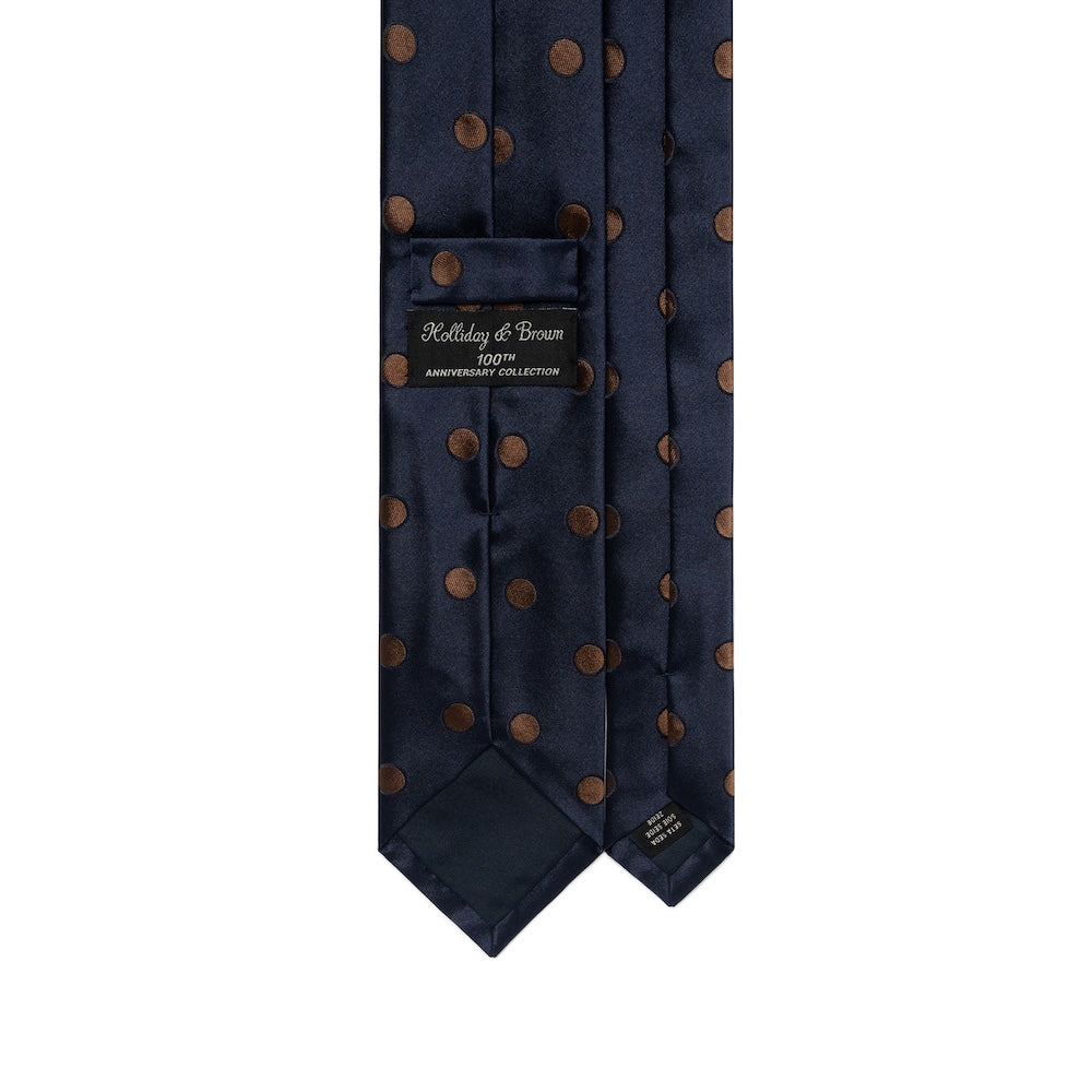100th Anniversary Classic Brown Dot Pattern Dark Navy Woven Silk Tie