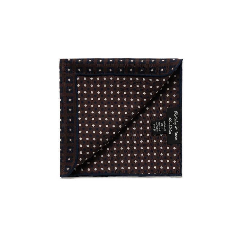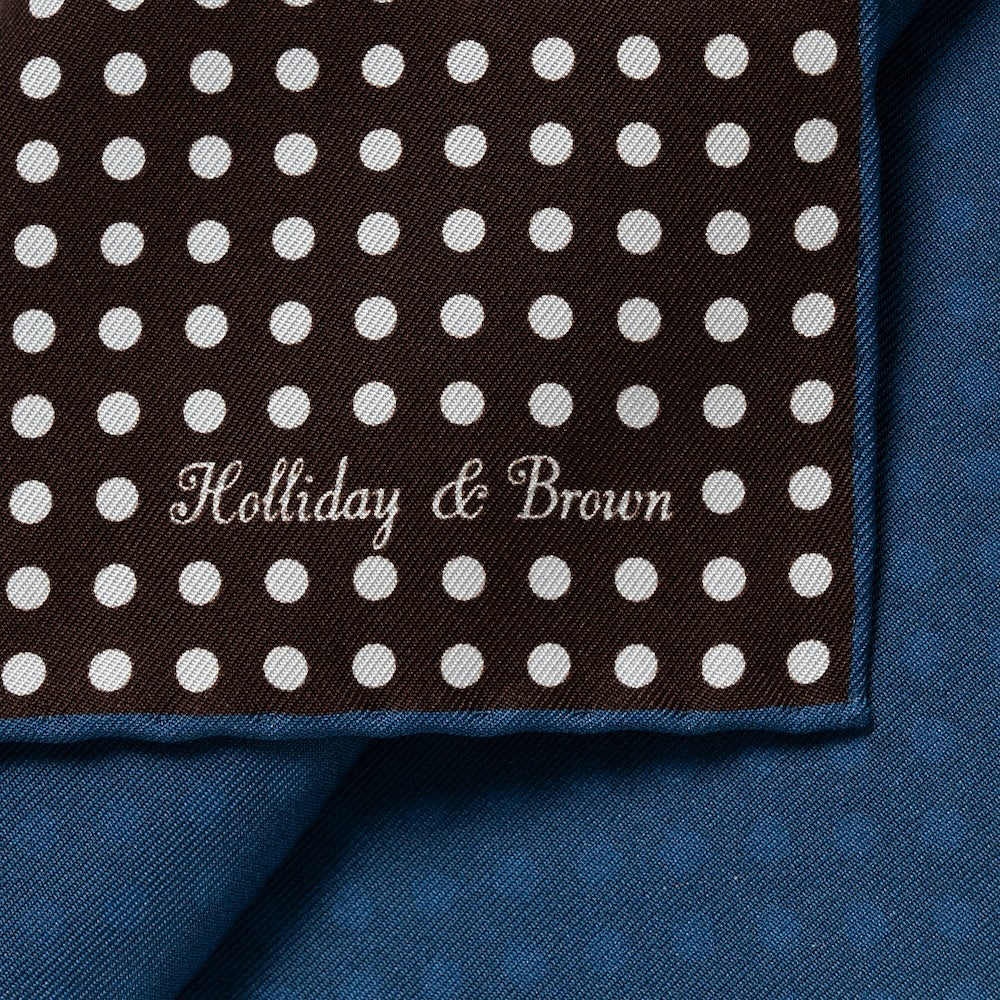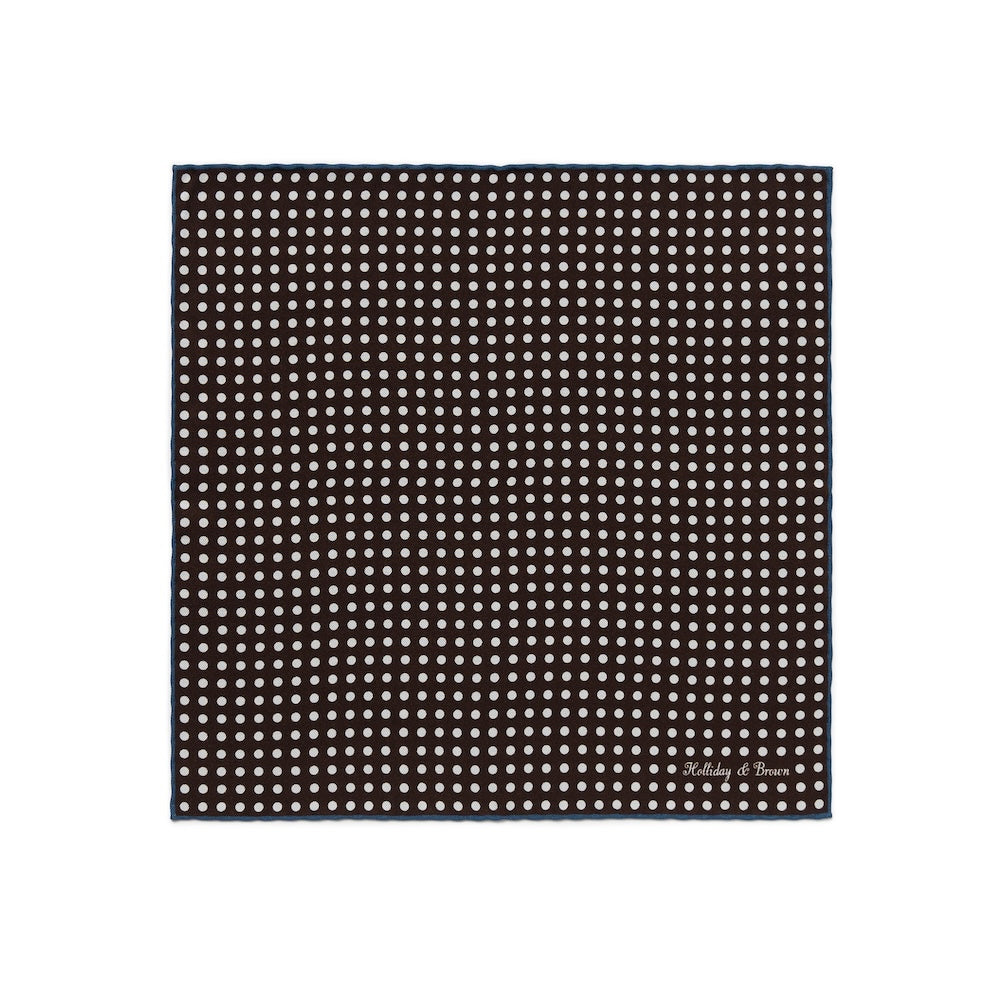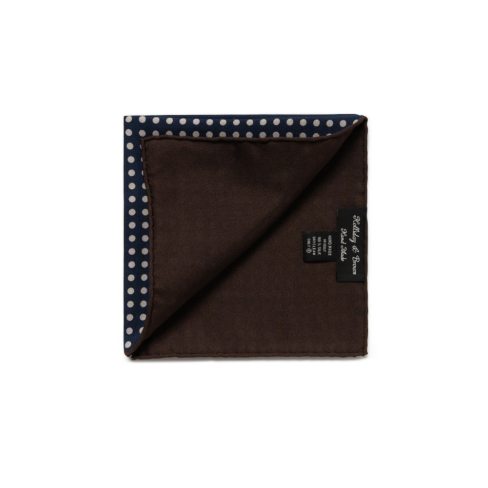 White Dot & Solid Double-Face Navy & Brown Printed Silk Pocket Square