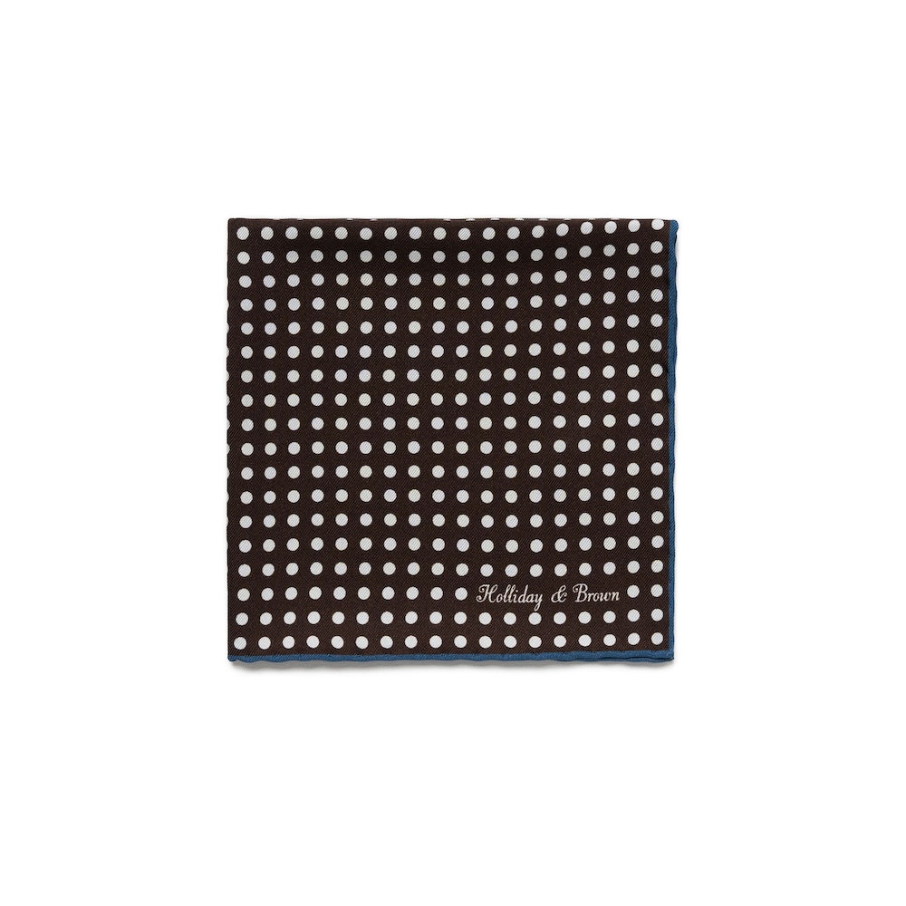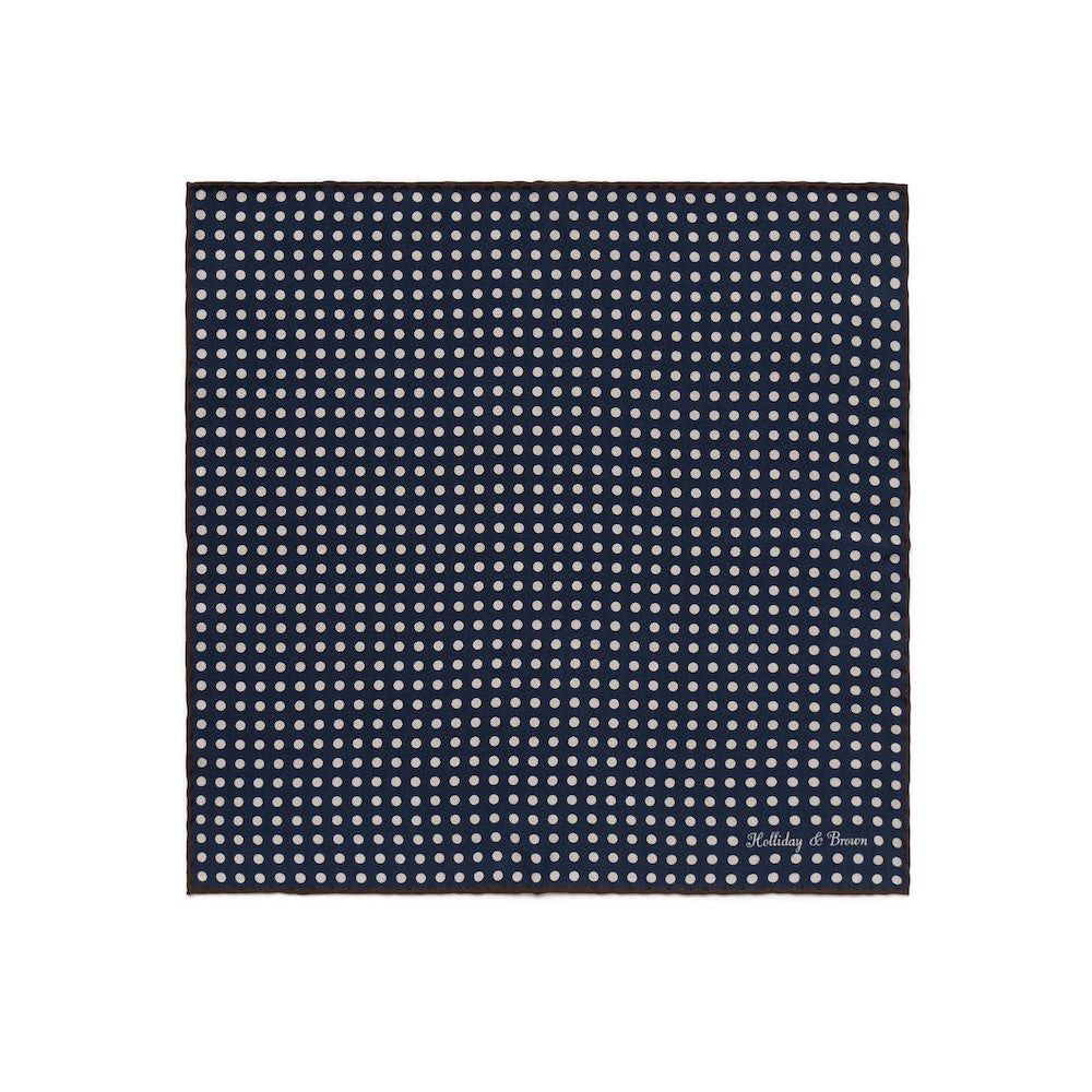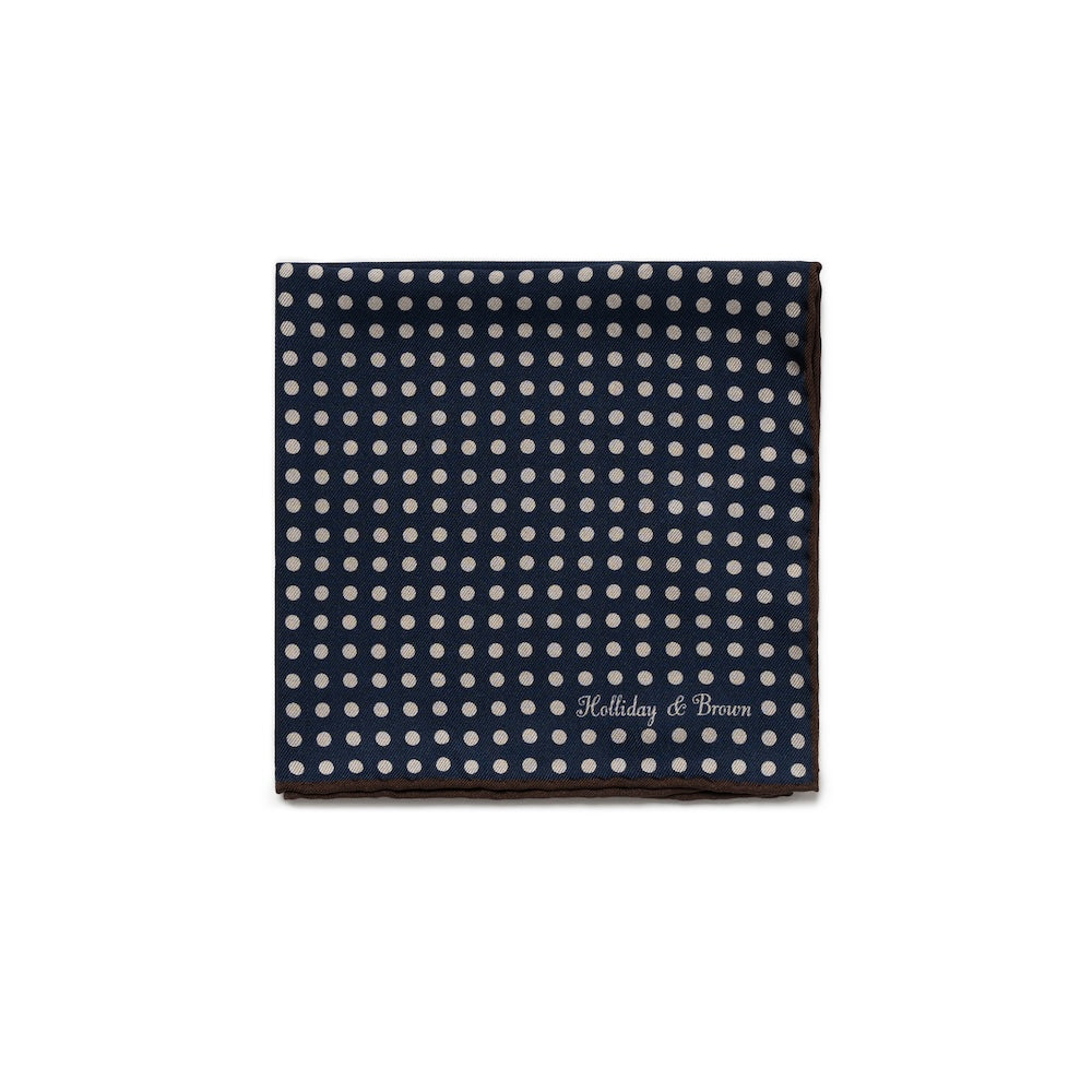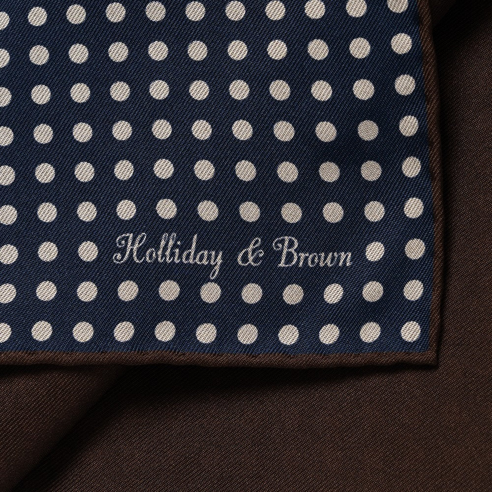 White Dot & Solid Double-Face Navy & Brown Printed Silk Pocket Square