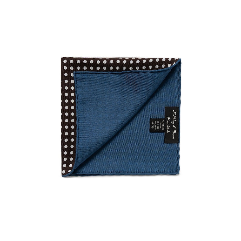 White Dot & Solid Double-Face Brown & Blue Printed Silk Pocket Square