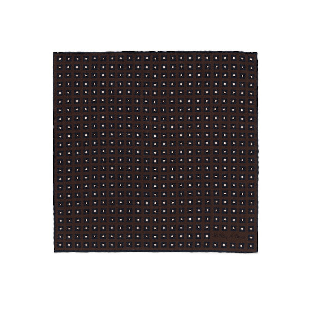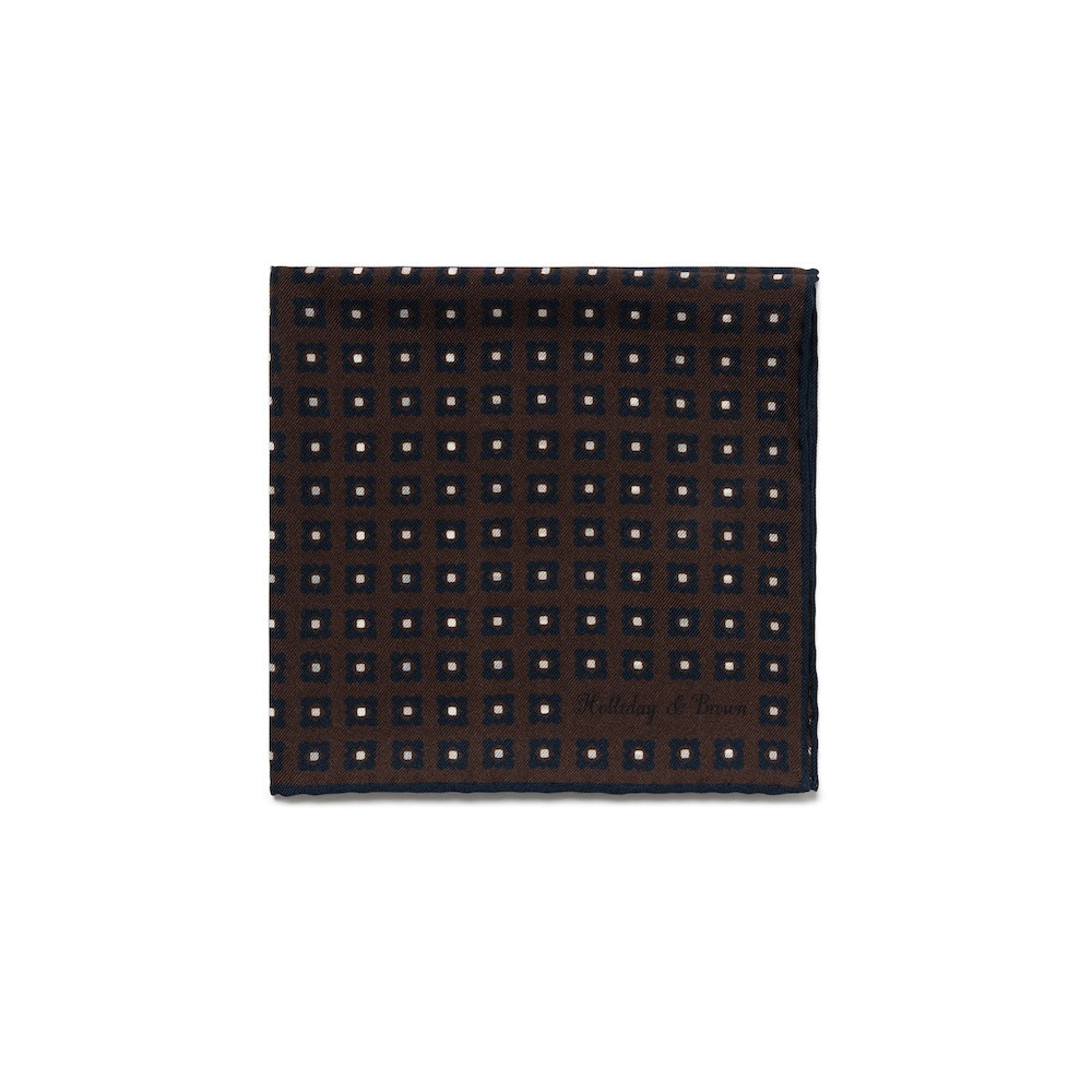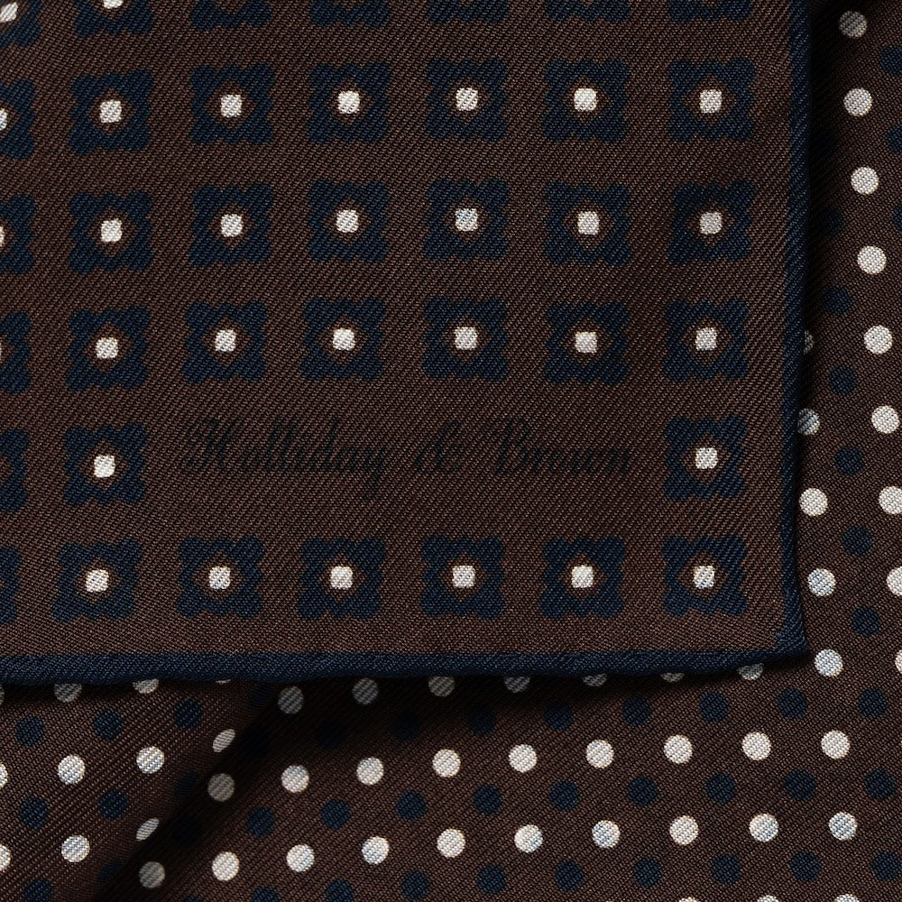 Flower & Multi-Dot Pattern Double-Face Brown & Navy Printed Silk Pocket Square