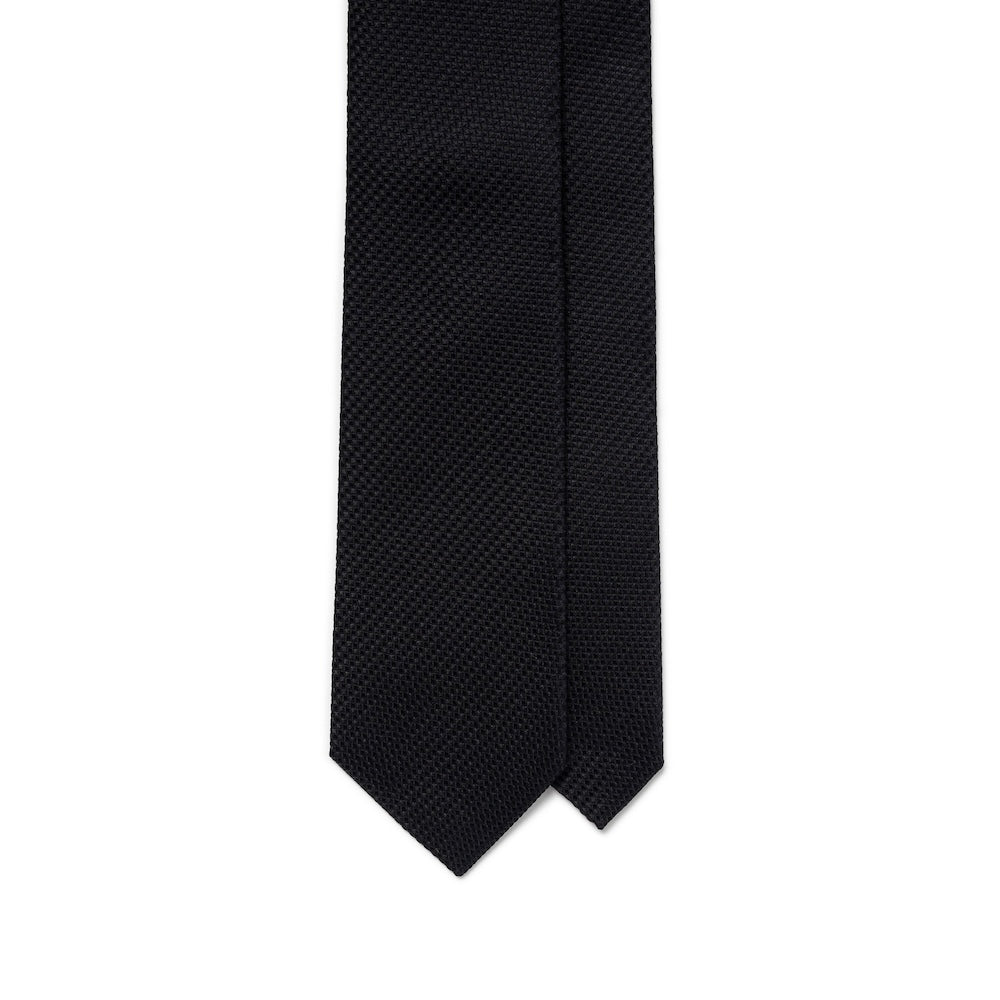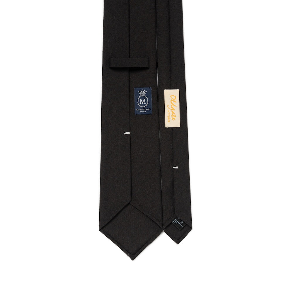 Oldgate Jet Black Solid 2PLY High Twist Wool Blend Sfoderato Tie