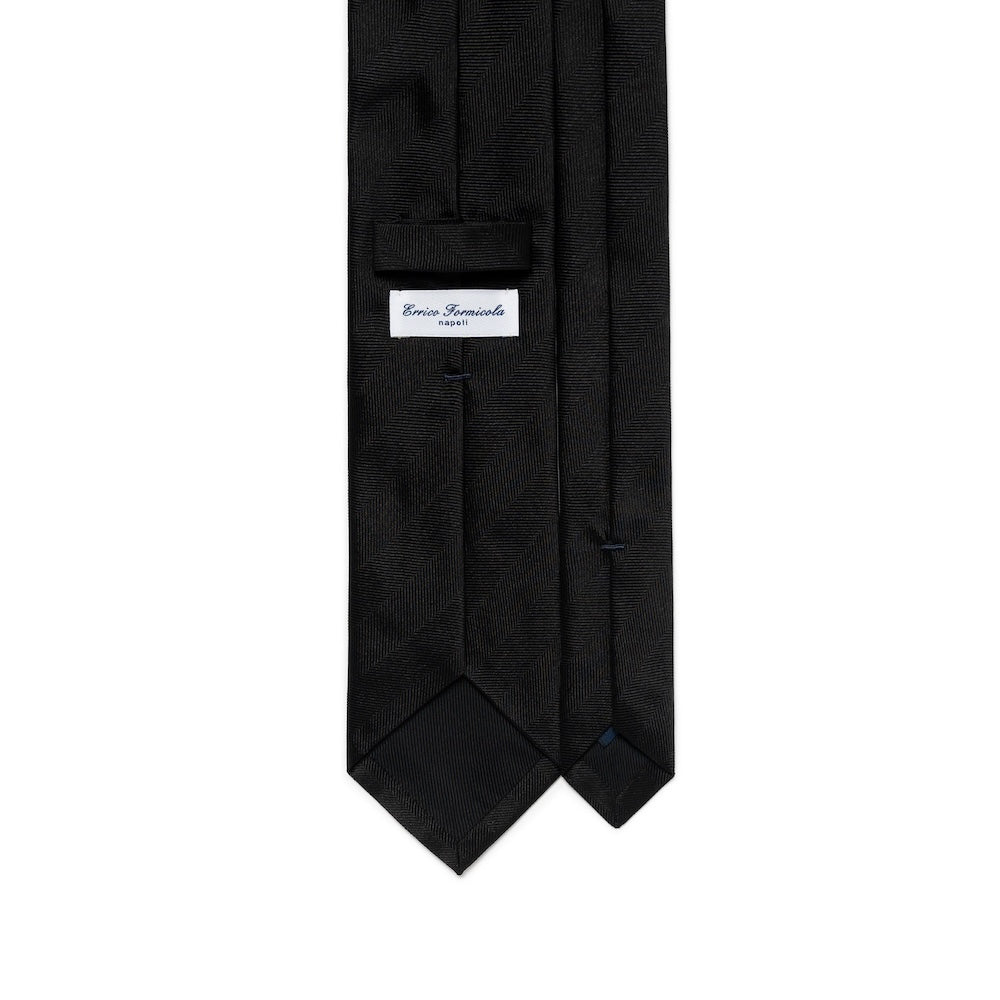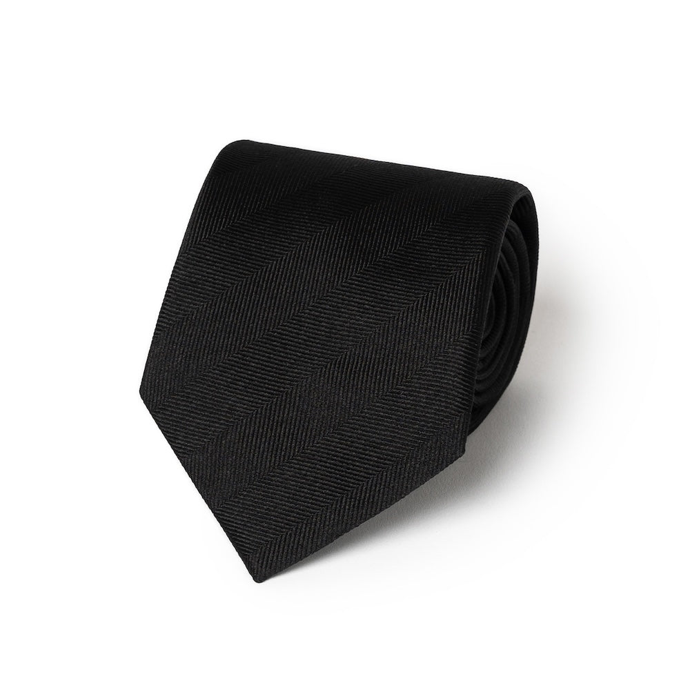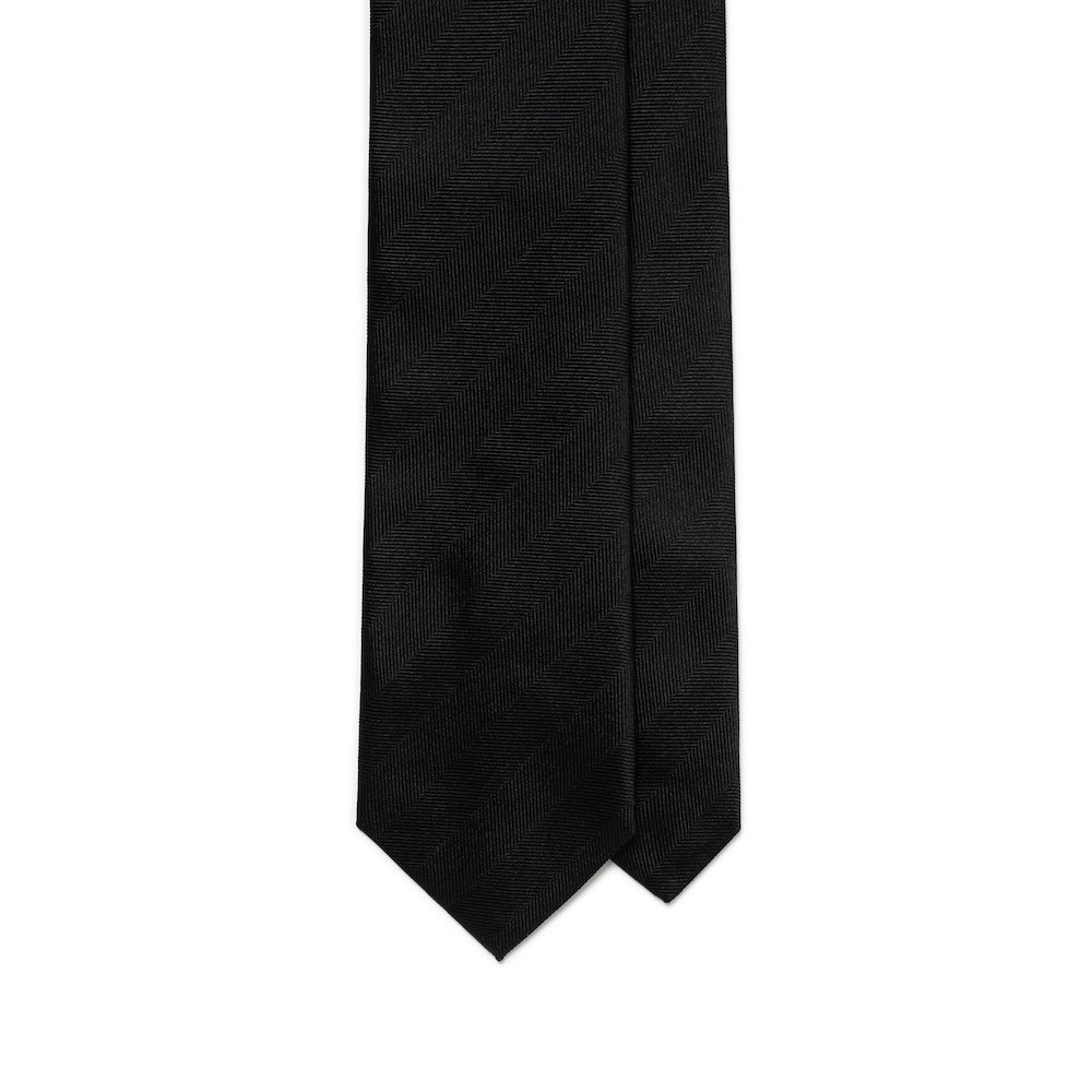 Jet Black Herringbone Pattern Woven Silk Tie
