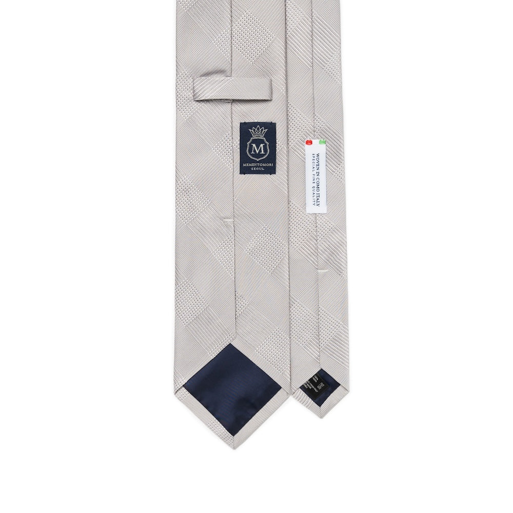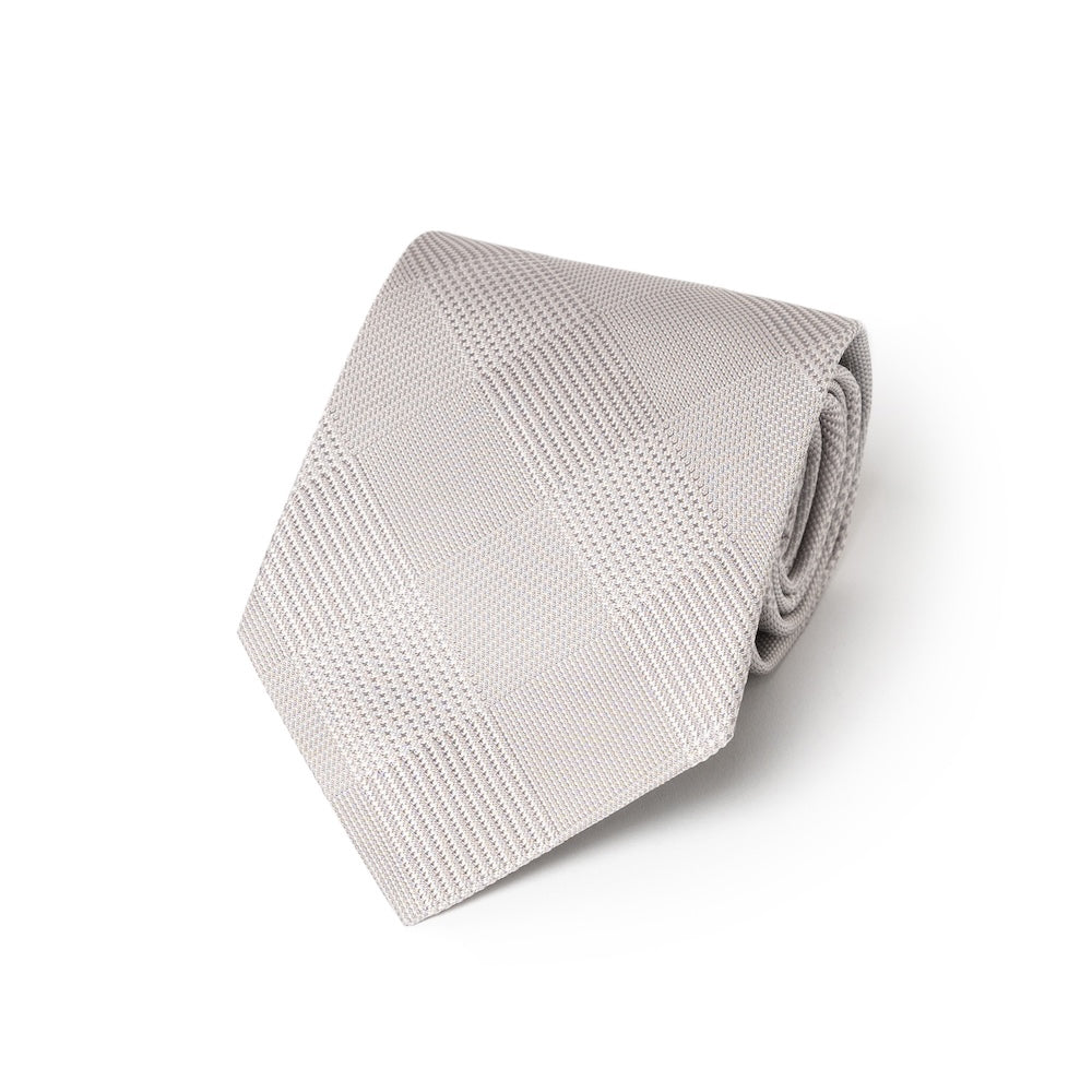 Como Silk Glen Check Pattern Silver White Tie